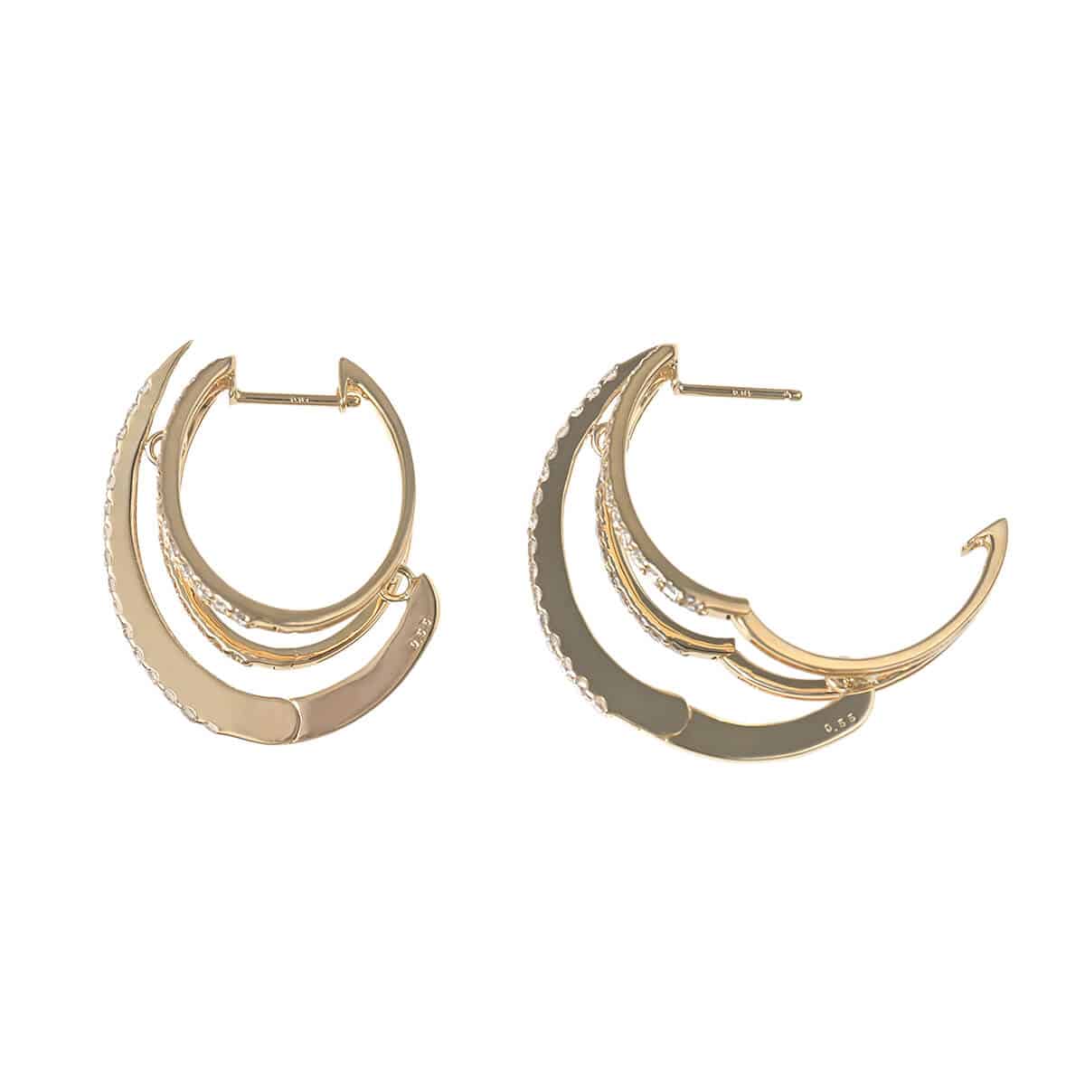 ダイヤモンドの連なりで描かれた、サイズの異なる3本のオーバルフープが重なって煌めくイエローゴールド製ピアス。さりげない仕草で優美に揺れるフープが、まばゆいきらめきでフェイスラインを飾ります。日常を本物のきらめきで彩る、美しく上質なダイヤモンドジュエリーです。