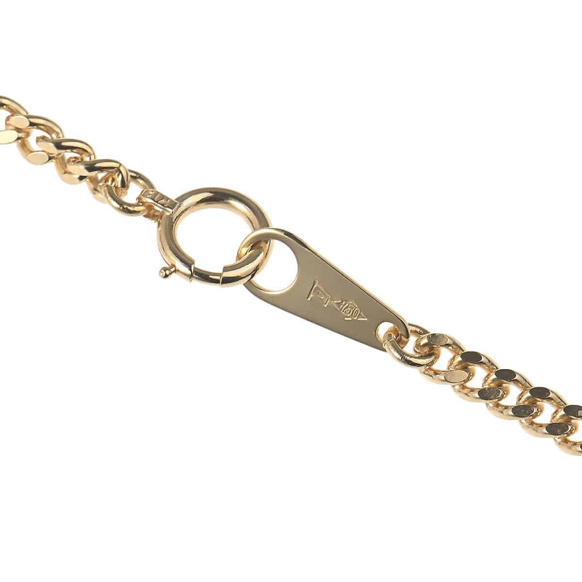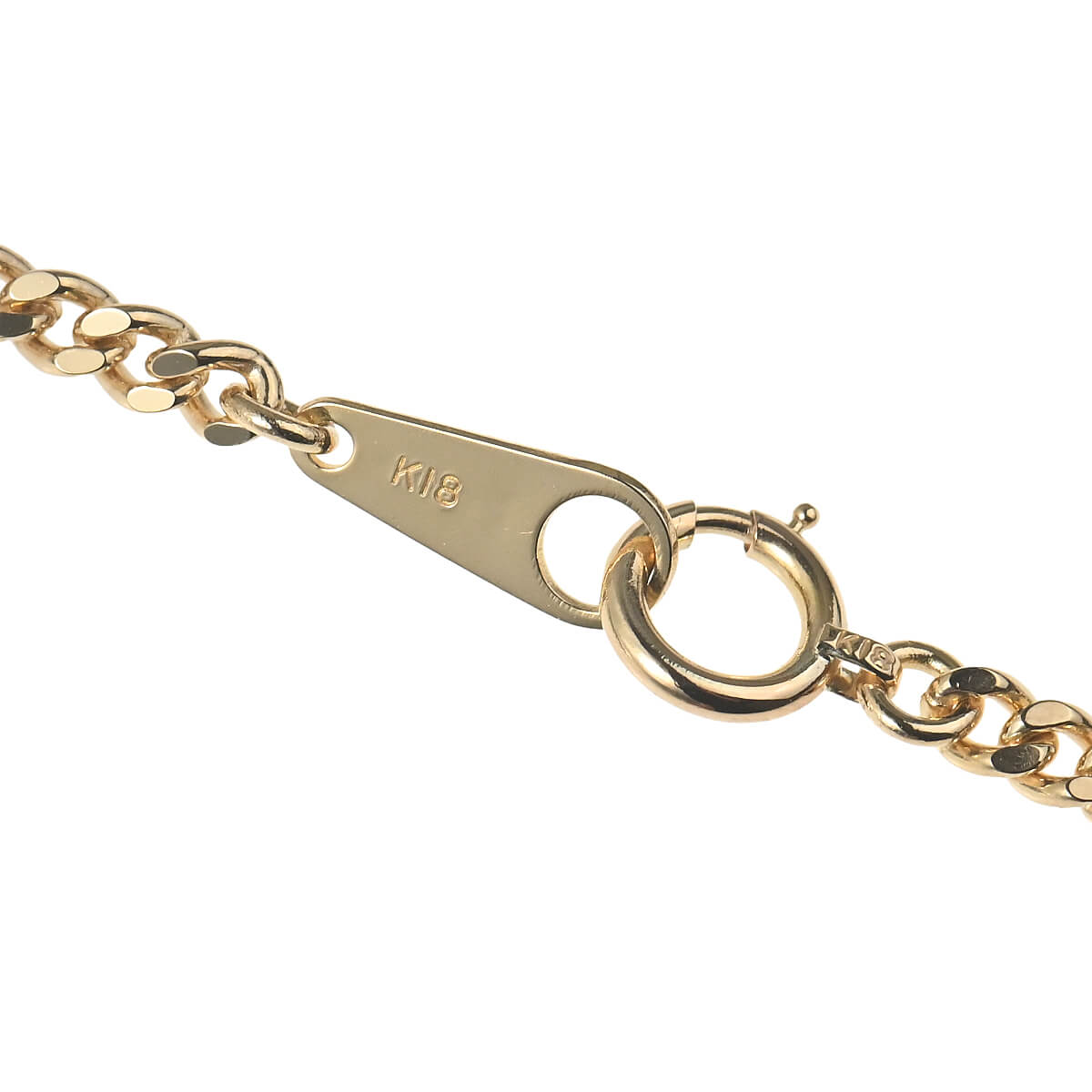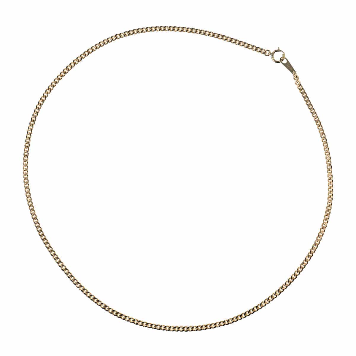 約40センチ、幅約2.5ミリ、約10グラムの、細めのイエローゴールド製2面シングルキヘイチェーンネックレス。キヘイチェーンとは、あずき型のチェーンを90度ひねり、さらに押しつぶしたつくりのデザインチェーンのこと。押しつぶした面が綺麗に並んで同じ面を向き、連続していることによるなめらかな輝きが魅力のデザインチェーンです。上下2平面にカットが施された2面シングルのキヘイチェーンは、カジュアルでスタンダードなデザイン。1本でつけるのはもちろん、ヘッドをとおしたり、レイヤードしたり、シンプルに使えるデザインが魅力。資産価値にも注目されるキヘイは他のチェーンとは違い、単なる装飾品としてだけでなく身につける資産としても人気です。