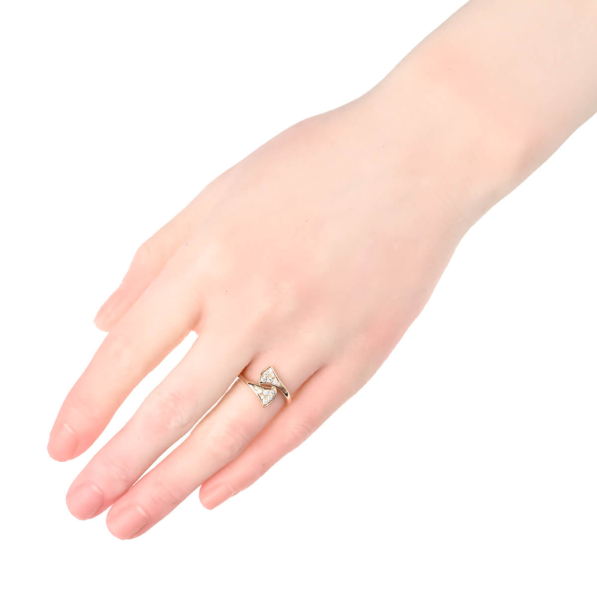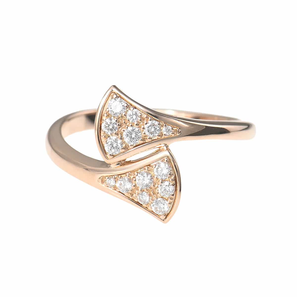 時代を象徴するディーヴァたちからインスピレーションを得た『BVLGARI(ブルガリ)』「ディーヴァ ドリーム」コレクション。イタリアン・ビューティーの真髄を表現したこのコレクションは、カラカラ浴場の大理石の壮麗さと、その扇型のモザイクのセンシュアルな曲線を捉えて創られたそう。至高の気品に宿る純粋さが指先で一層の存在感を放ち洗練された煌めきで目を奪う、ピンクゴールド製リング。ブルガリらしい個性にあふれる、フェミニンで洗練されたリングがどんな仕草も美しく印象づけます。向かい合う扇形のカスケードに敷き詰められた厳選されたパヴェダイヤモンドの煌めく気品が精彩を放つ、洗練された美しさと個性に溢れたリングです。