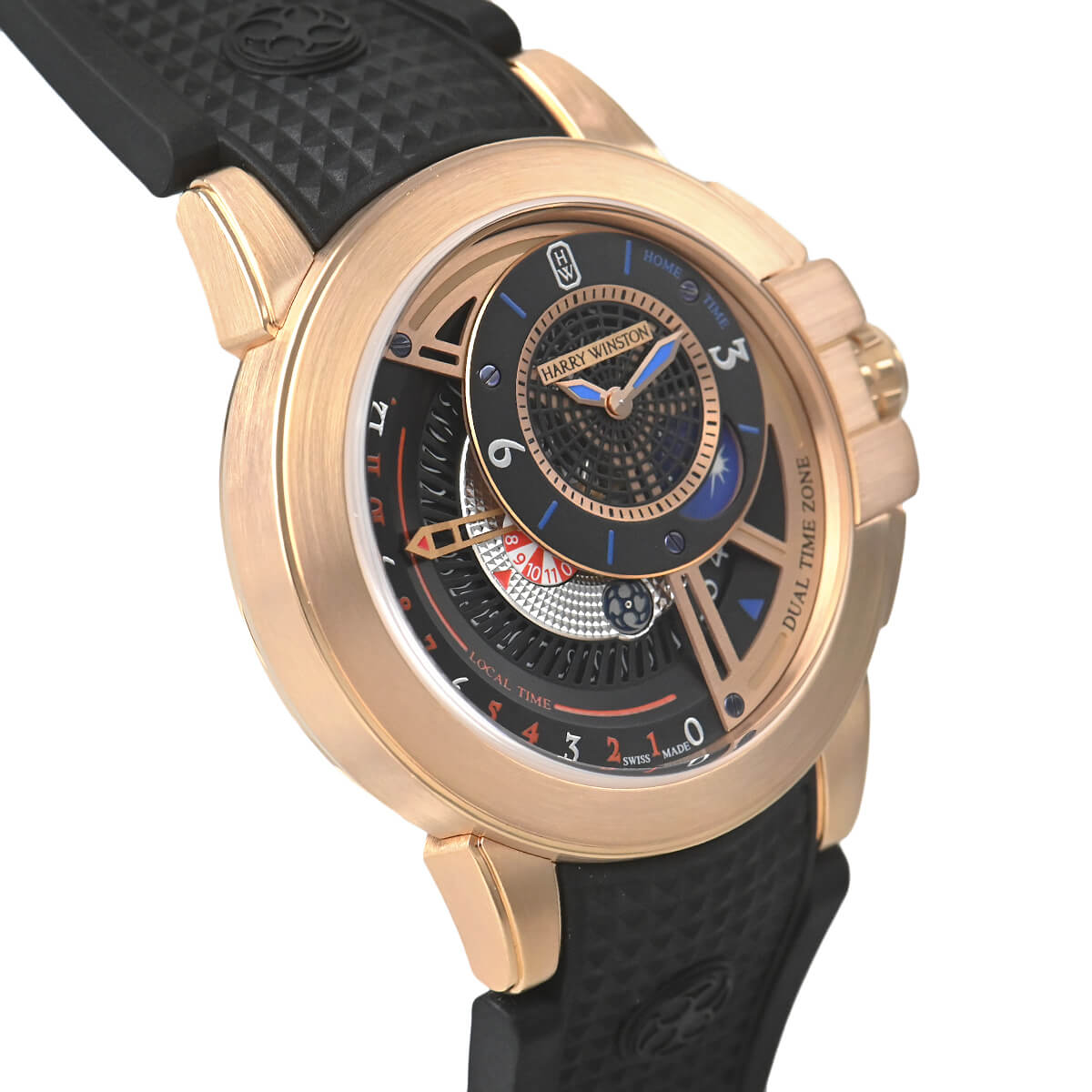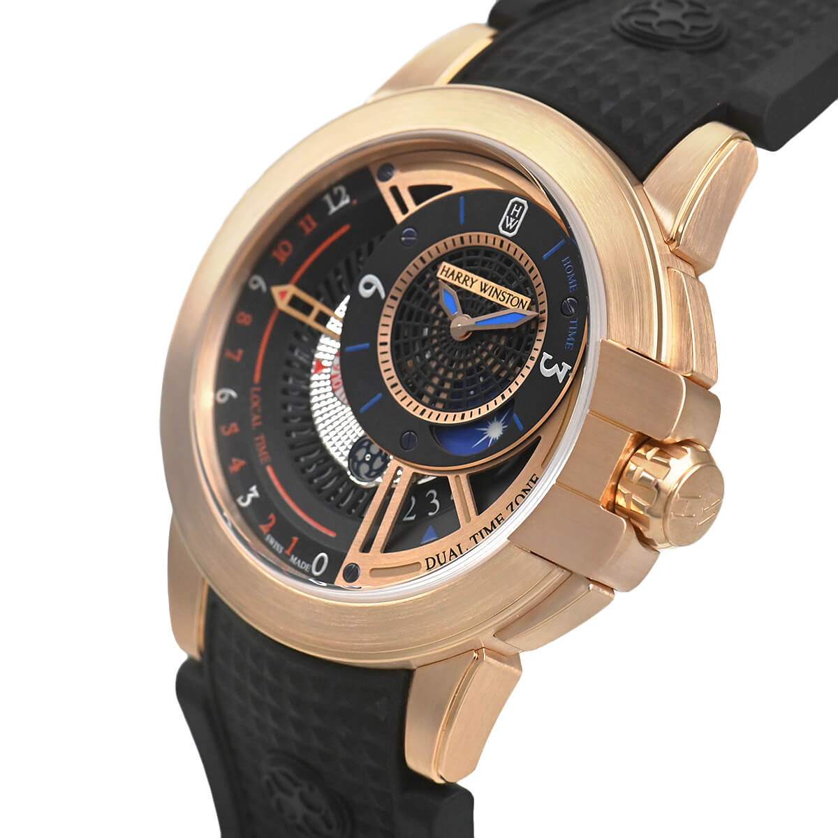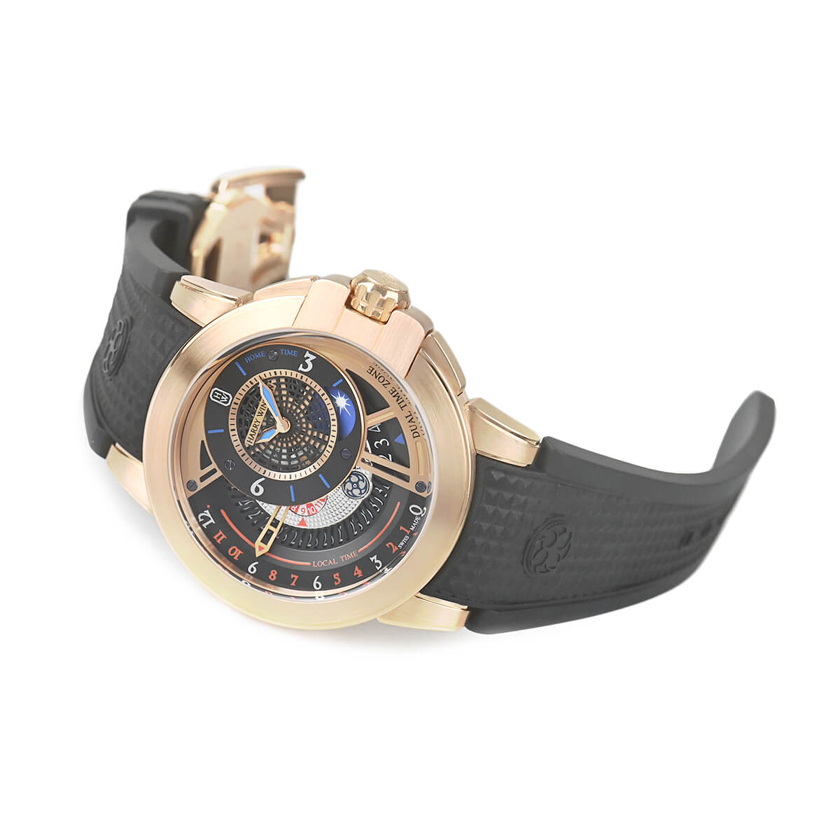 人気を博すオーシャンシリーズにデュアルタイム機構を装備した「オーシャン デュアルタイム オートマティック」。オフセットされた2時位置の時分針でホームタイムの時間表示と昼夜表示を行ない、ローカルタイムはレトログラード式で文字盤の左側に扇形で表示します。