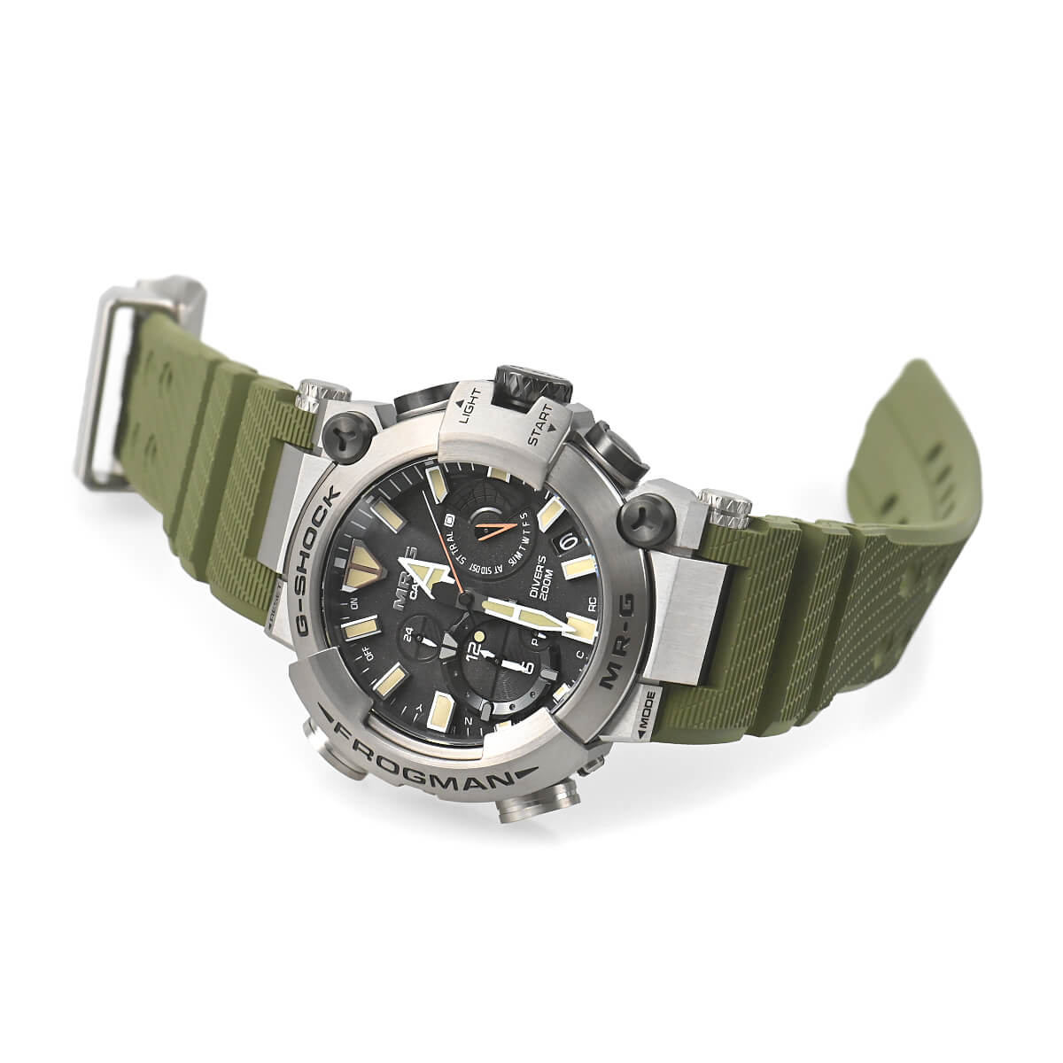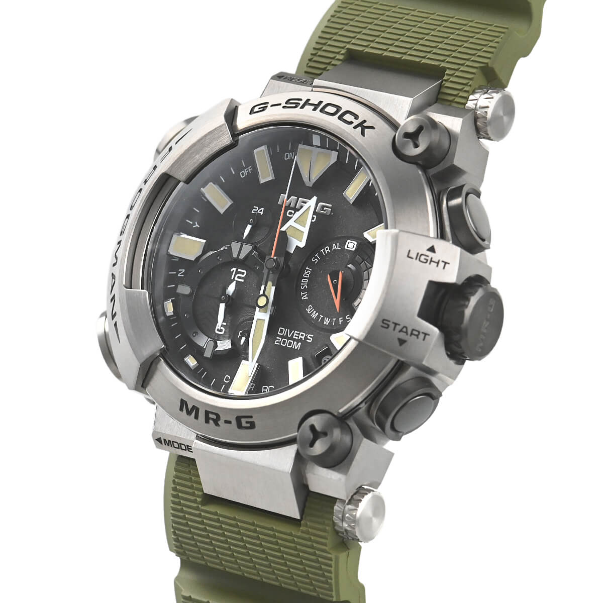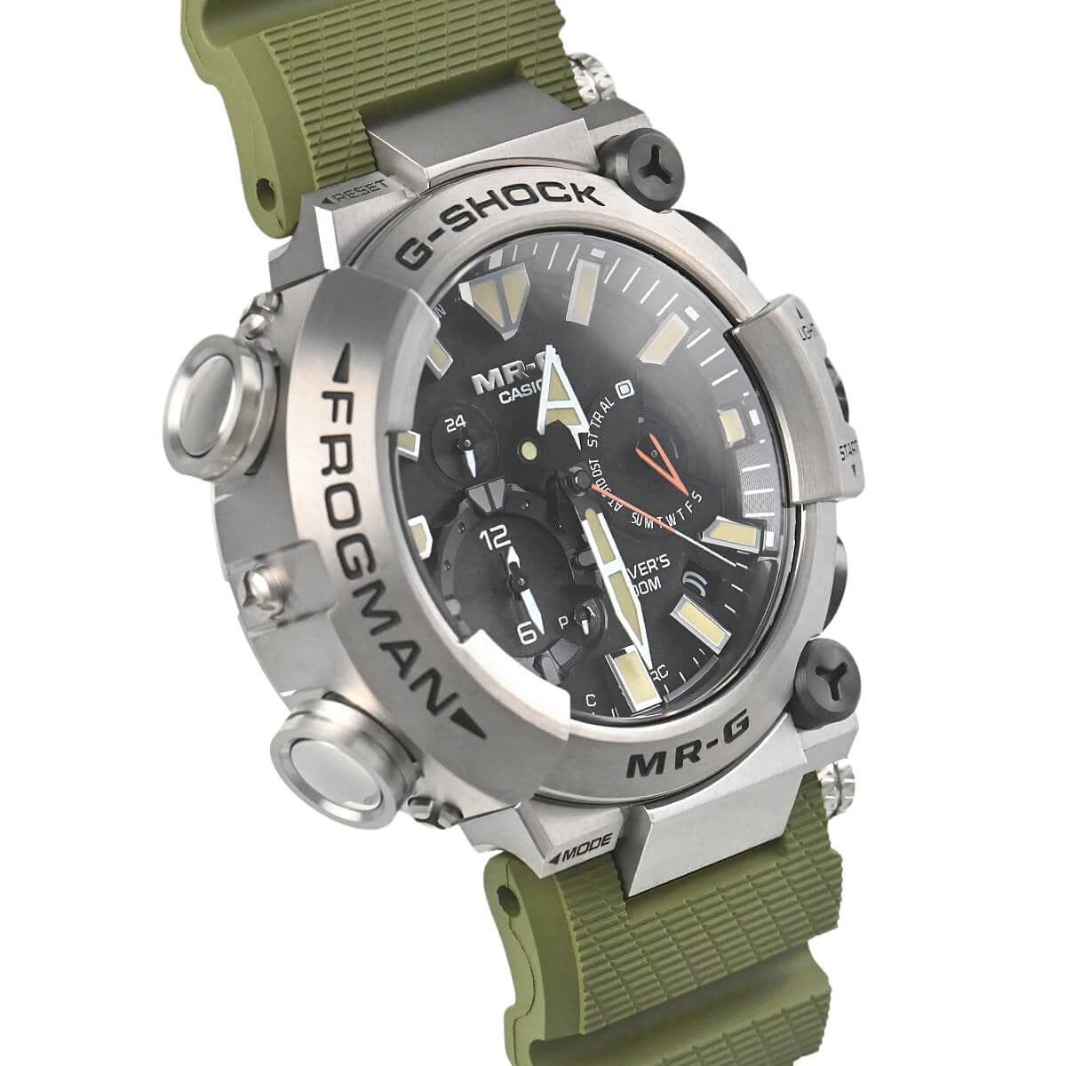 Gショックの最上位ライン「MR-G」。こちらの「MRG-BF1000RG-3AJR」は、ISO規格200m潜水用防水機能を持つダイバーズウオッチ「フロッグマン」にチタン外装を採用したモデルです。