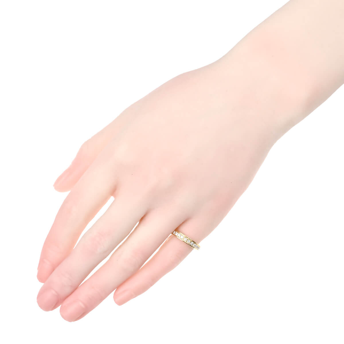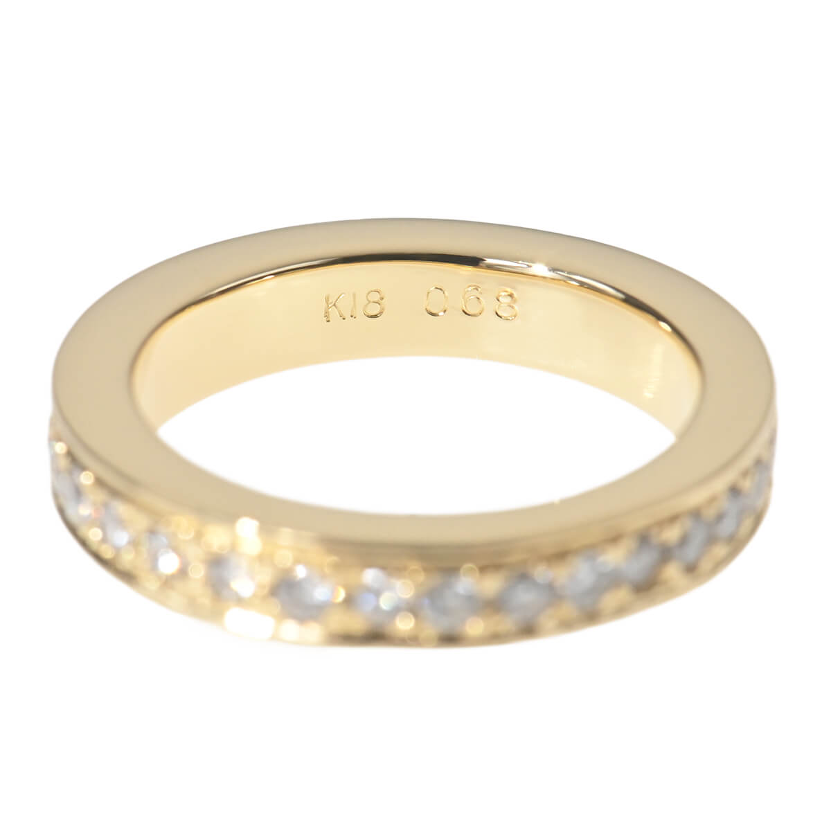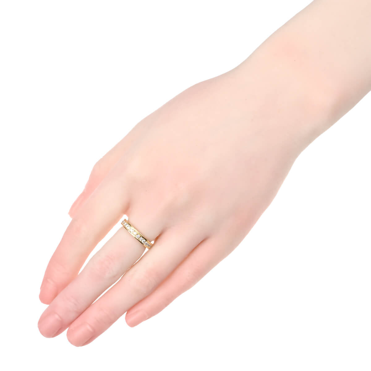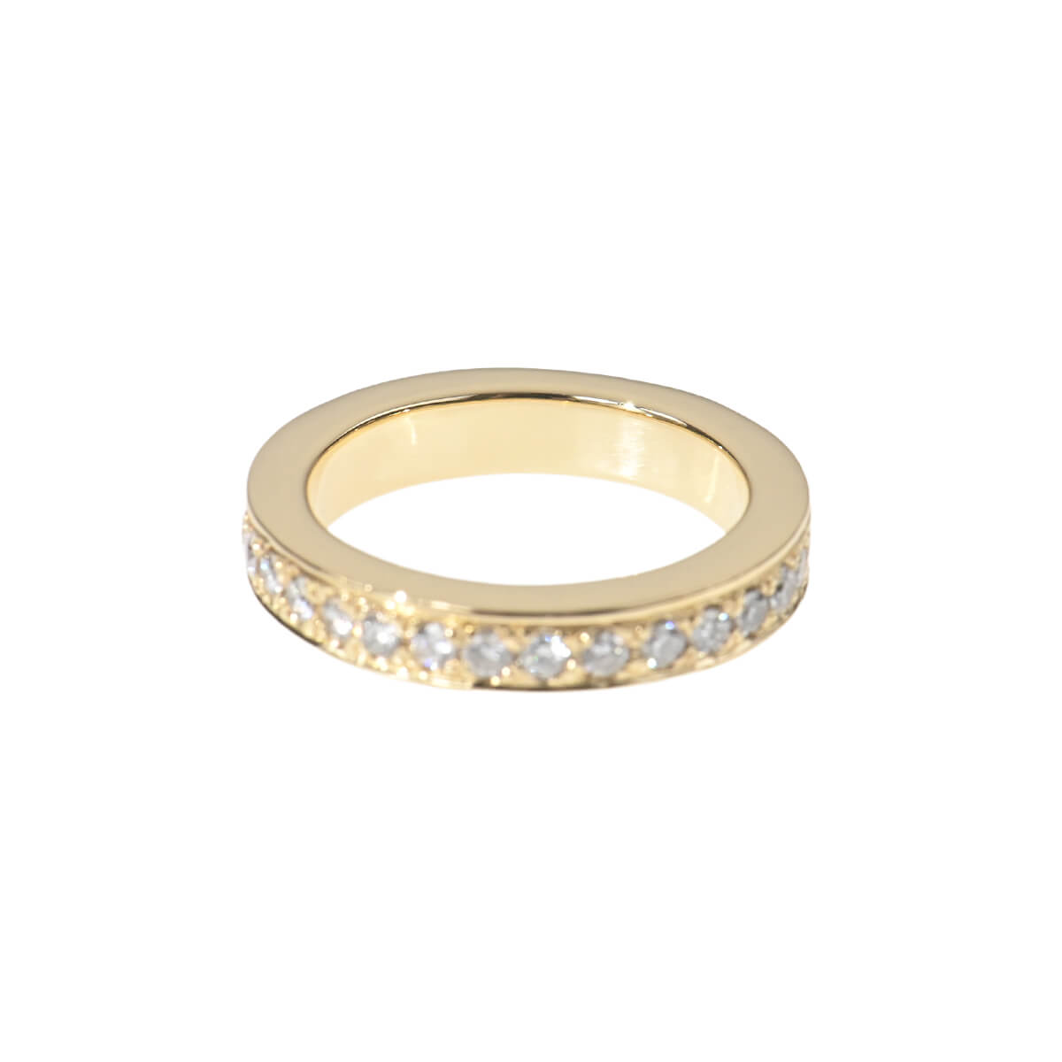 0.68ctのダイヤモンドが輝きのラインを描く、イエローゴールド製エタニティリング。繊細なプロングでセッティングされたダイヤモンドの上下をレールのように挟んだデザインは引っ掛かりがほとんどなく、デイリー使いにぴったり。オーセンティックなデザインのダイヤモンドリングは、どんなスタイリングにもしっくりなじみ、指先でエレガントなラインを描きます。小さめサイズのエタニティは、ピンキーリングにも。素材やデザインの異なるリングを数本レイヤードしたり、自分らしいルックを楽しめる、シンプルで洗練されたオーセンティックなデザインのダイヤモンドリングです。