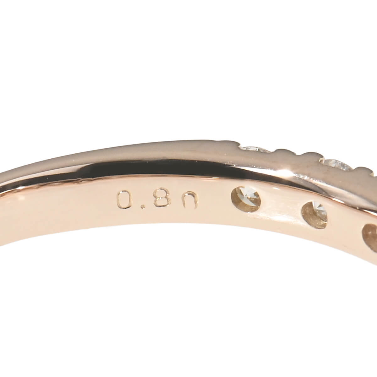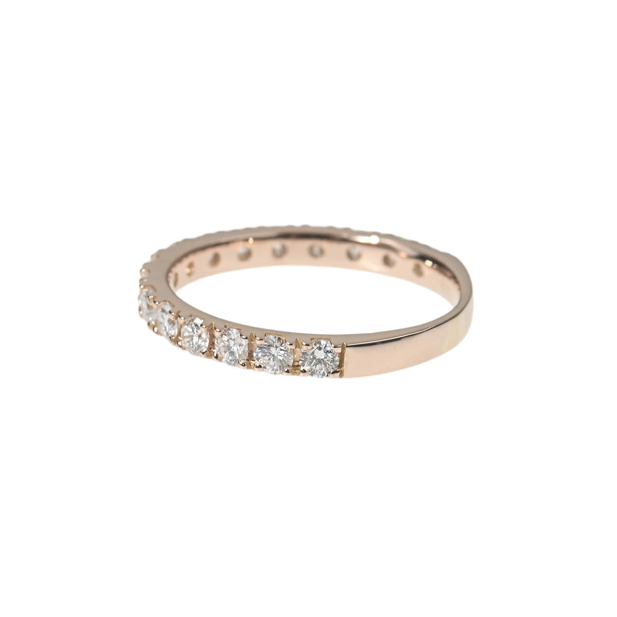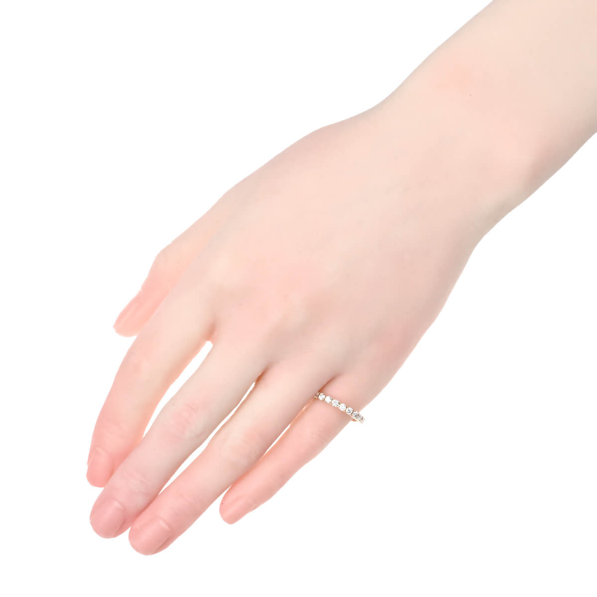 トータル0.80ctのダイヤモンドが華奢なプロングでセッティングされ1列にならぶ、ピンクゴールド製リング。可憐なピンクゴールドときらめくダイヤモンドのフェミニンなコントラストが美しく指先を彩るリングは、どんなシーンやスタイリングにもマッチします。素材やデザインの異なるリングを数本レイヤードしたり、自分らしいルックを楽しめる、シンプルであるからこそ引き立つ洗練された美しさをもつダイヤモンドリングです。