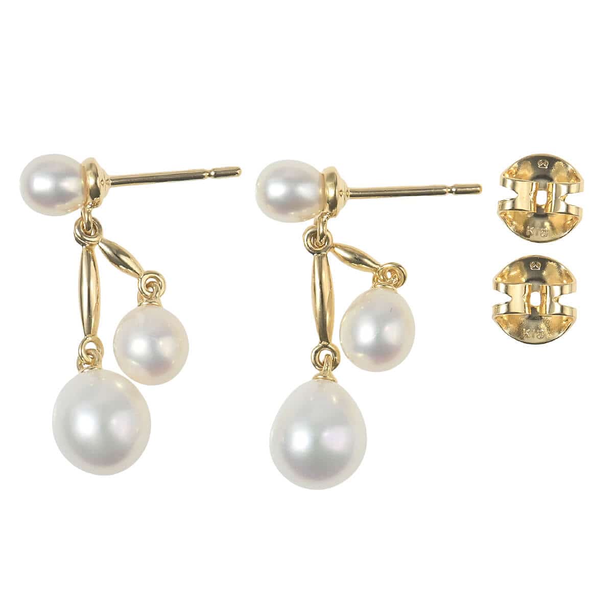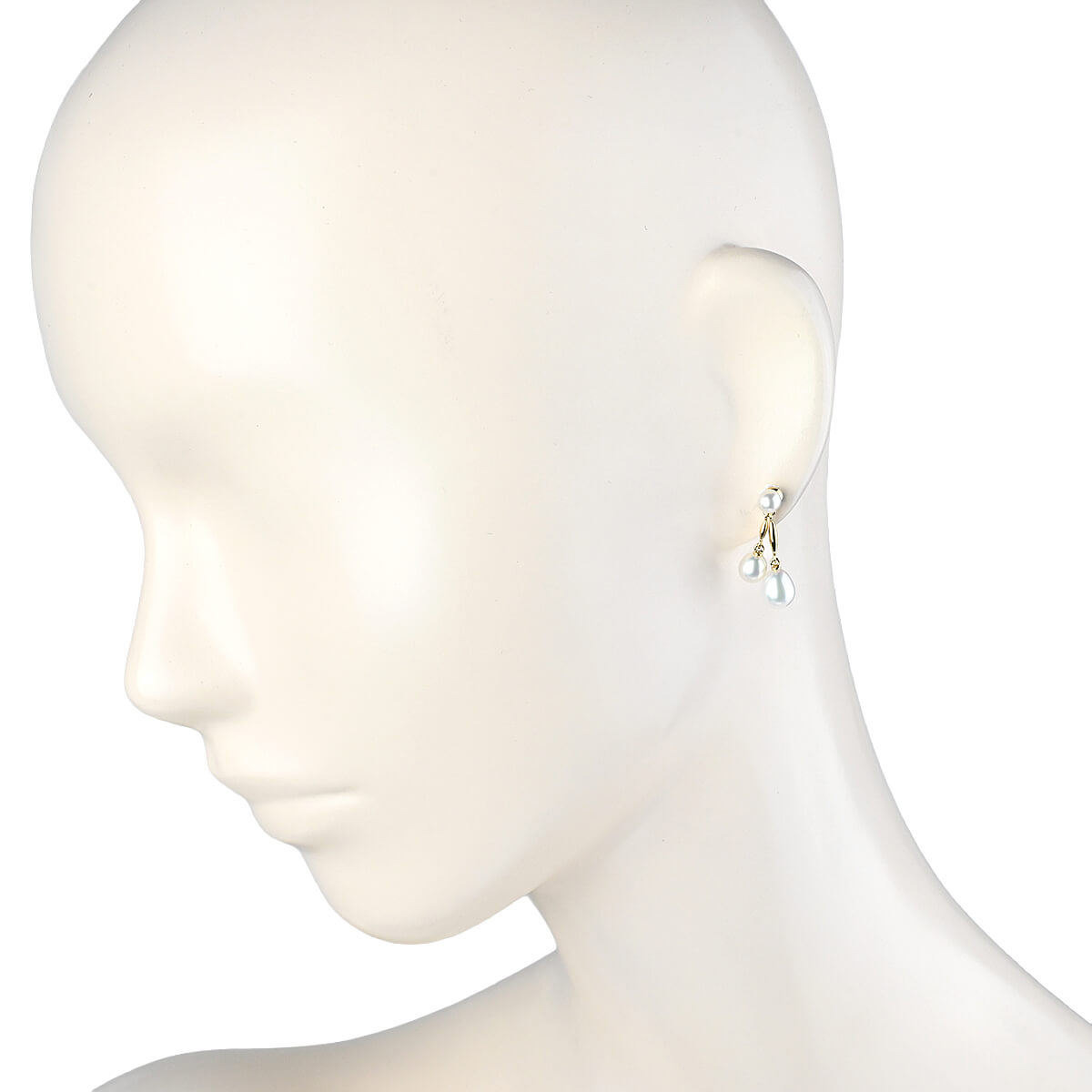 1893年に世界で初めて真珠の養殖に成功し、真珠に生涯を捧げ、「Pearl King(真珠王)」とまで呼ばれ歴史にその名を刻んだ「御木本幸吉」氏が、“世界中の女性を真珠で飾りたい”と夢を抱いて創業した『MIKIMOTO(ミキモト)』。パールだけでなく様々なジュエリーにも力を入れ、世界中から大きな評価を得て、今や日本を代表する世界のジュエラーとなりました。ちいさなパールから、ゴールドのマテリアルで繋がれた2粒のパールが揺れて印象的にフェイスラインを彩るピアス。木の実のような、愛らしく可憐なMIKIMOTOならではの美しいパールが洗練された優しい存在感を放ちます。真珠本来の品格ある美しさをシーンやスタイリングを選ばず楽しめる、上質でありながら手に取りやすい価格も魅力のパールジュエリーです。