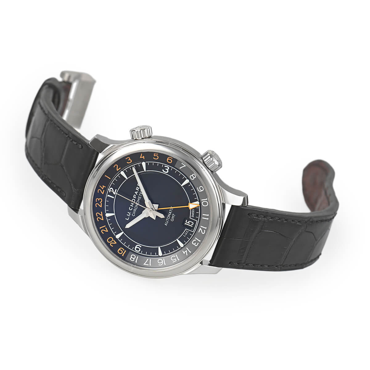 ジュエラーとしての高い名声を誇りながら、いち早く自社開発ムーブメントを搭載するなど、真面目な時計作りの姿勢でも知られる「ショパール」。こちらはマニュファクチュールの20周年を記念して作られた「L.U.C GMT ワン」。