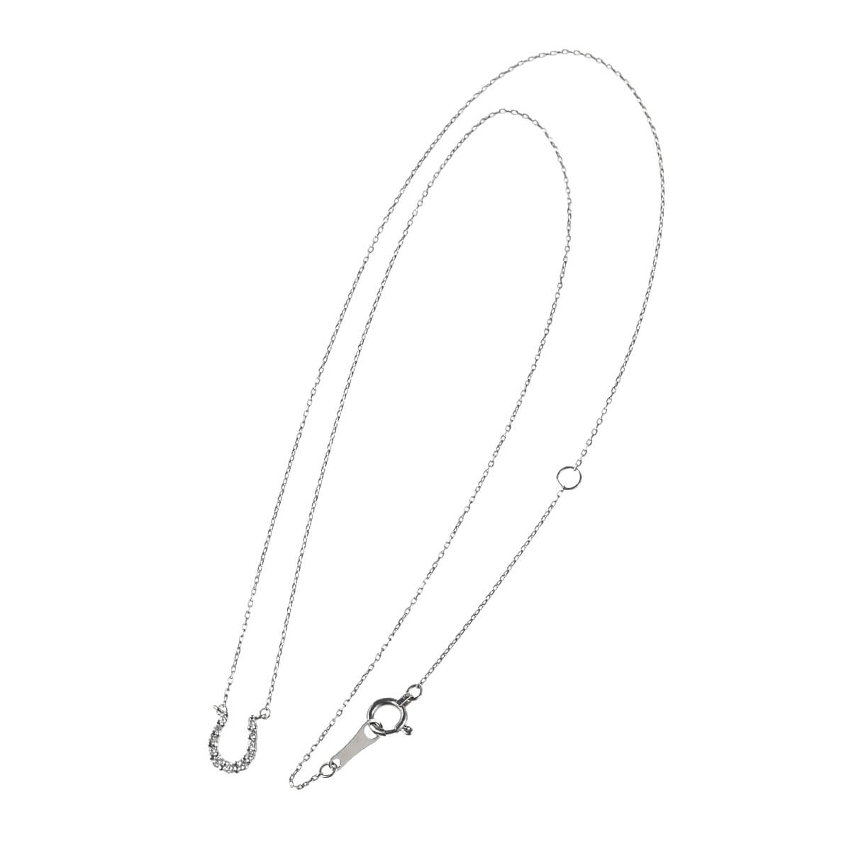 世界中で魔除けやお守りとして昔から愛されてきたラッキーモチーフ、U字型の窪みで幸せを受けとめ満たしてくれるといわれる馬の蹄につける“蹄鉄”、「ホースシュー(馬蹄型)」のモチーフを繊細なチェーンにあしらったプラチナ製ネックレス。ダイヤモンドで形づくられた繊細ながらもきらめくホースシューモチーフがデコルテに寄り添って、さりげなくも洗練された存在感を放ちます。肌に溶け込むような煌めきを放ち体の一部のように肌身離さず着けられそうな、可愛い価格も魅力のダイヤモンドジュエリーです。