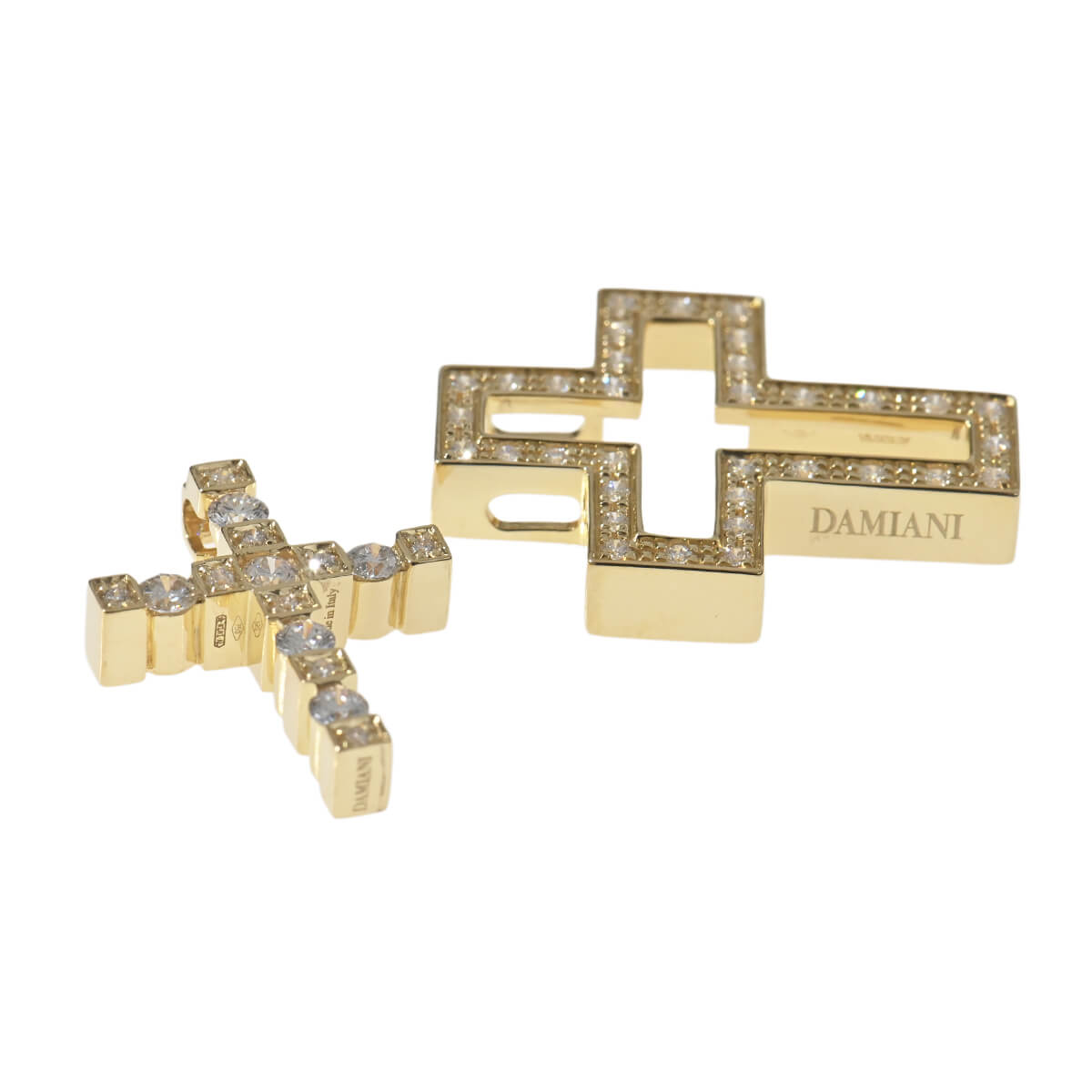 「ベル・エポック(仏語でよき時代の意)」は、19世紀末〜20世紀初頭のパリをはじめとする華やかなヨーロッパ時代を背景に、その当時に開発された映画フィルムにインスピレーションを受けてデザインされた『DAMIANI(ダミアーニ)』のアイコンコレクション。1996年の誕生以来、ダミアーニの屈指の名品と称えられ、スタイリッシュなデザインジュエリーとして大人の女性をはじめ男性にも熱愛されるコレクションです。3WAYで使用可能にリモデルされた定番ベルエポック、スモールサイズのイエローゴールド製ペンダント。内側で煌めくクロスと外側を囲むクロス、それぞれのクロスを単品でつけたり、組み合わせてゴージャスにつけたり、つけ方で華やかさや印象を自由にコーディネートできるクロスペンダントは、どんなスタイリングにも、デイリーにも、ジェンダーレスにマッチして、身につける人の魅力を惹きたてながら、一層美しく煌めきます。