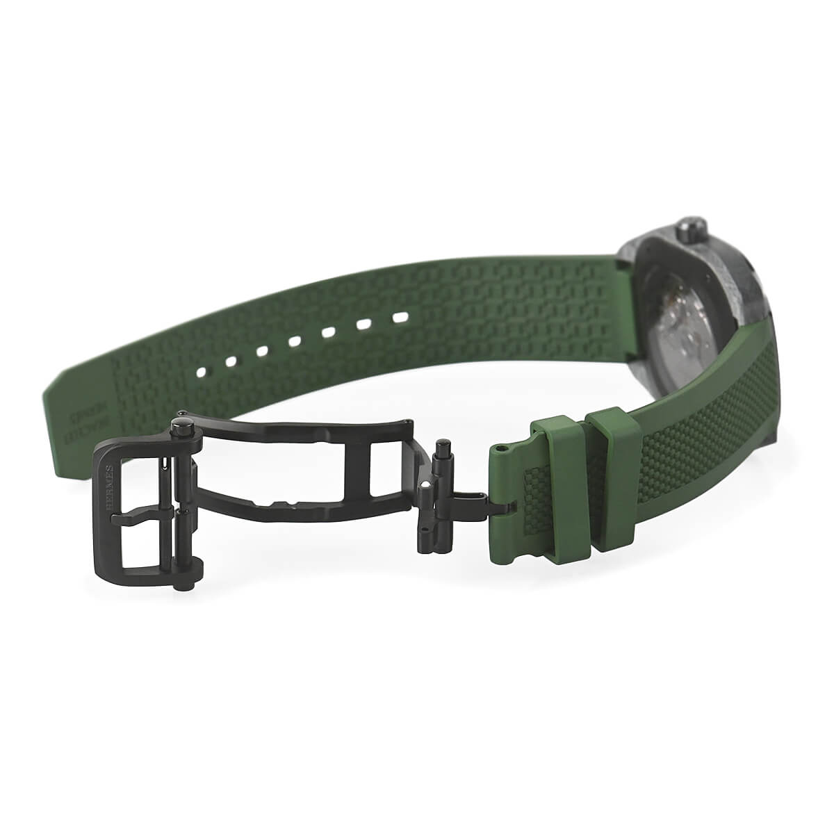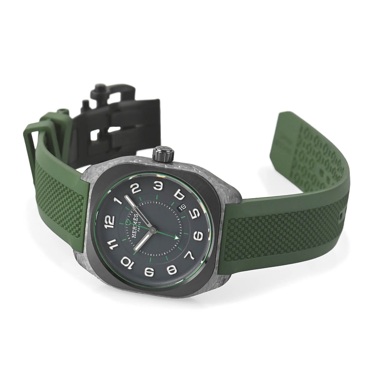 スポーティーでアーバンテイストのデザインに、レザーの専門家であるエルメスでは珍しく、ラバーストラップを合わせることでアクティブな雰囲気を演出します。