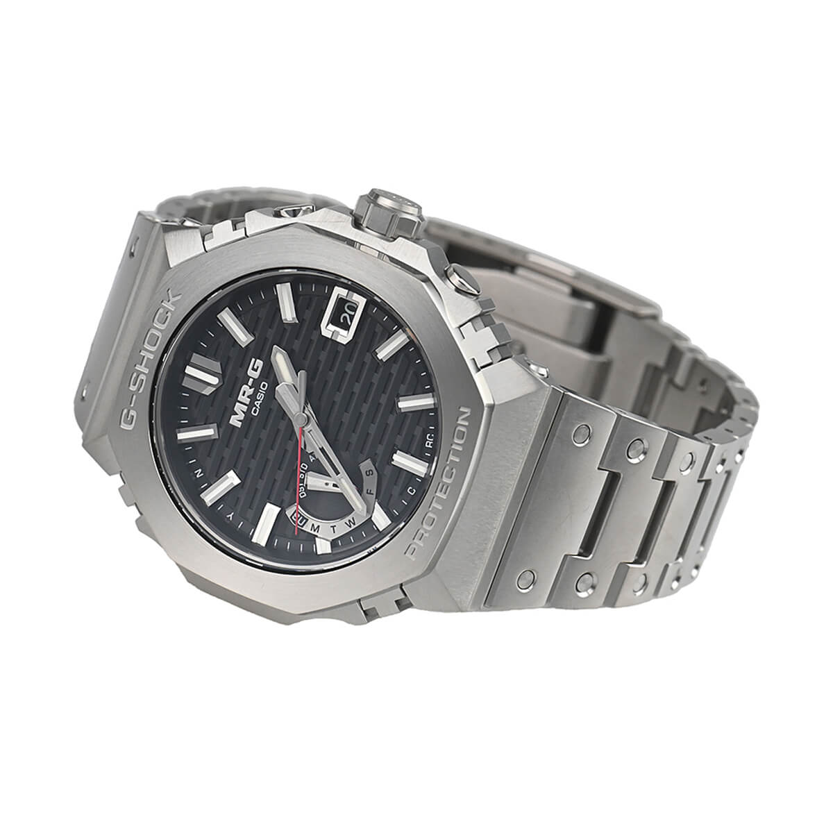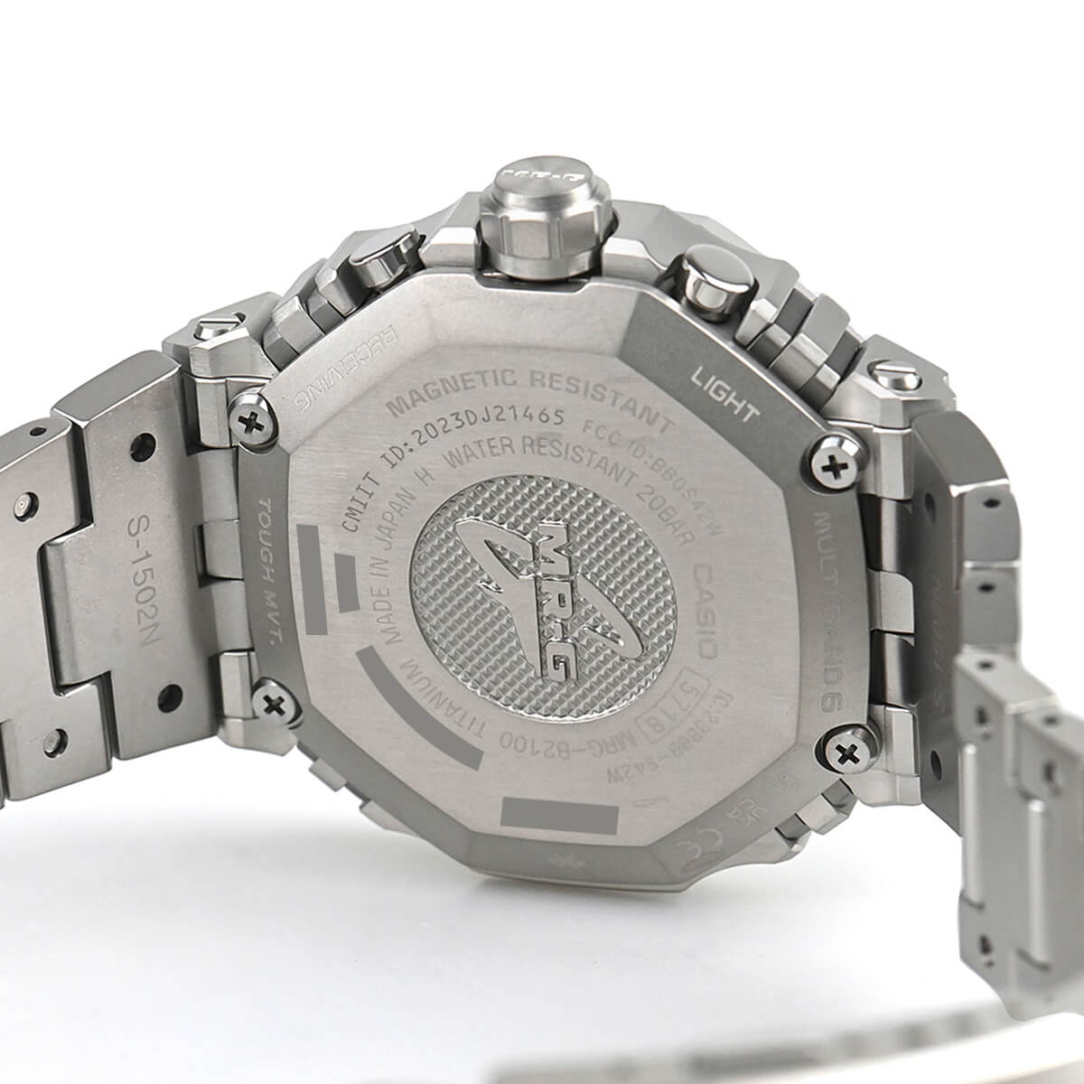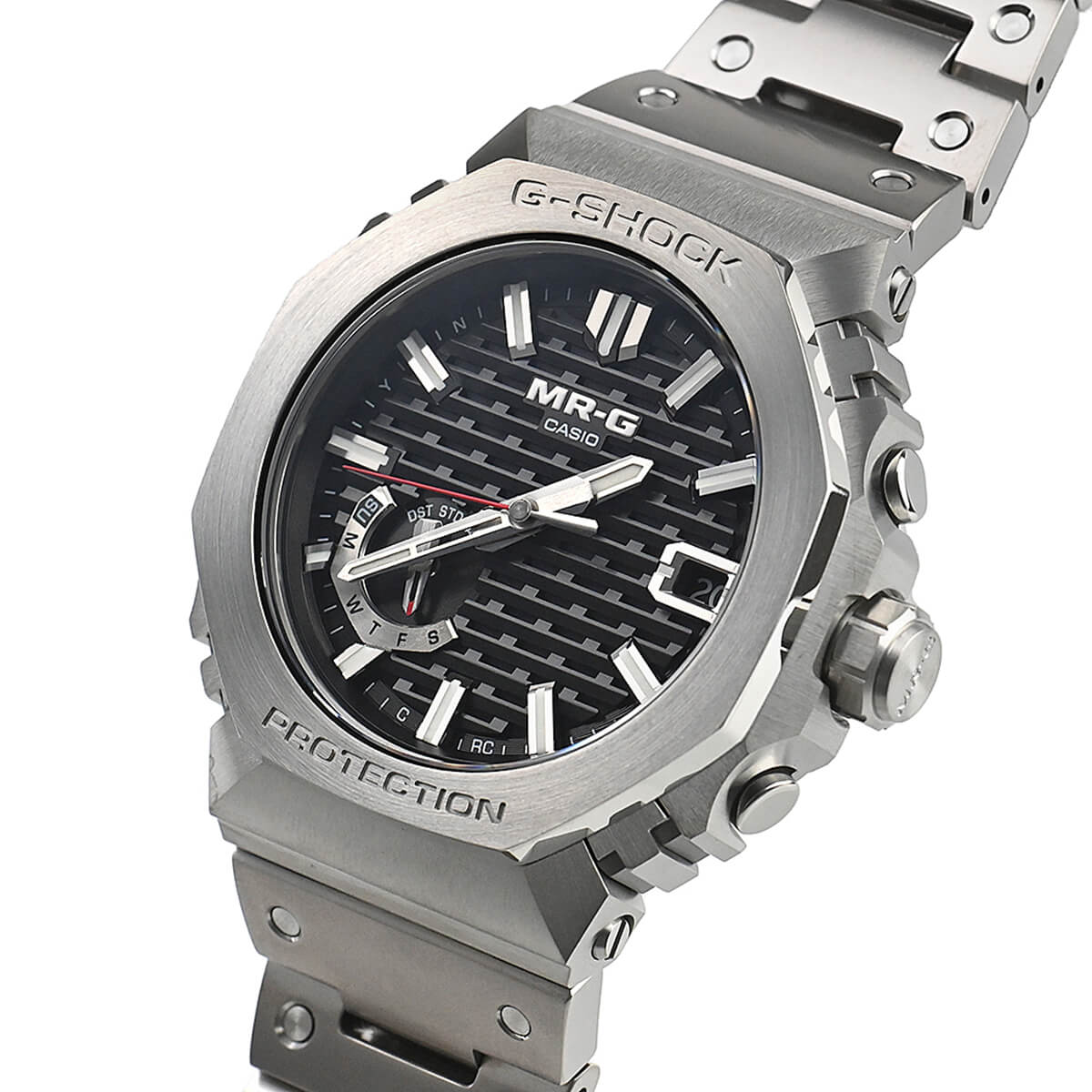 Gショックの最上位ライン「MR-G」。こちらは2019年に登場した「GA-2100」のデザインをMR-Gに落としこんだ「MRG-B2100D-1AJR」。
