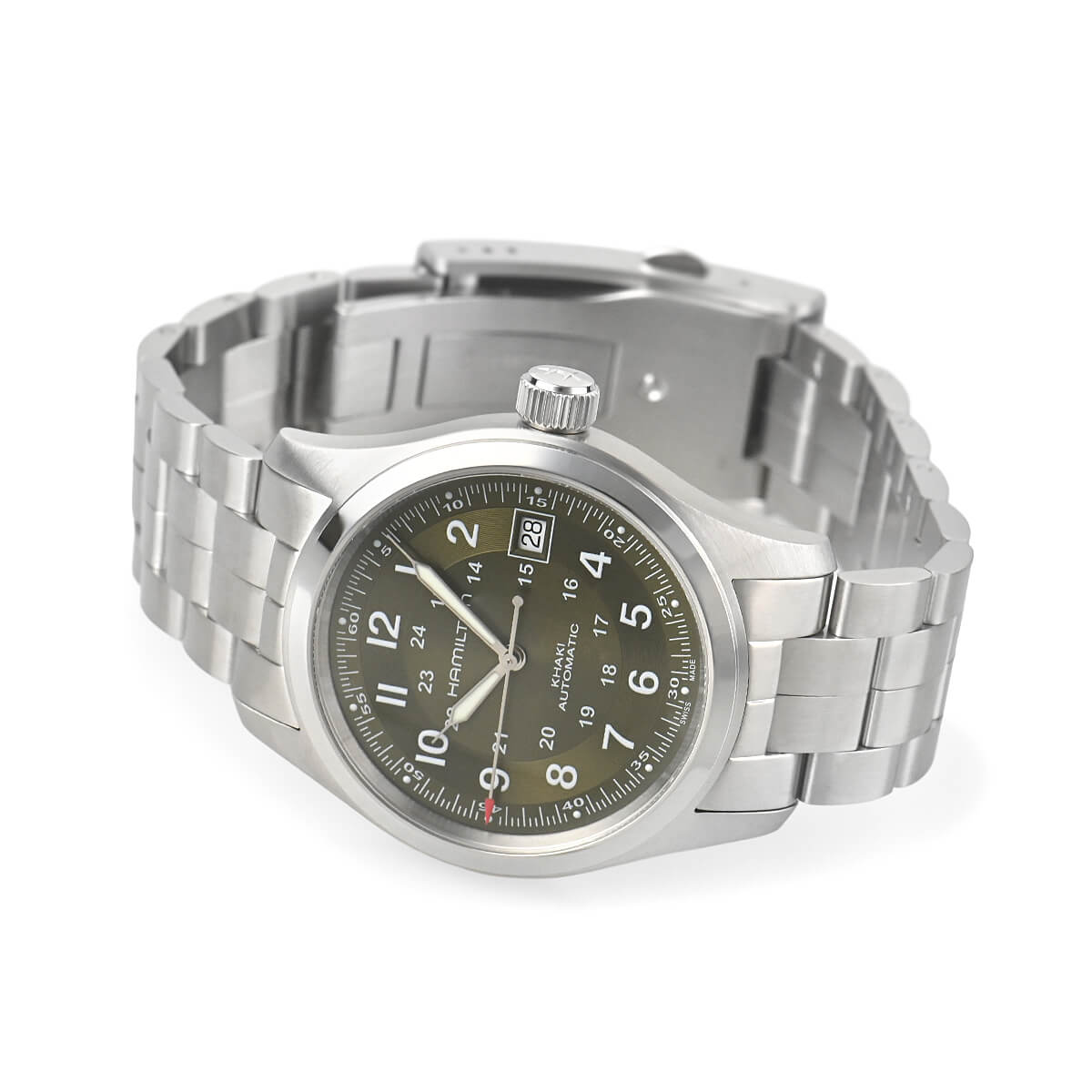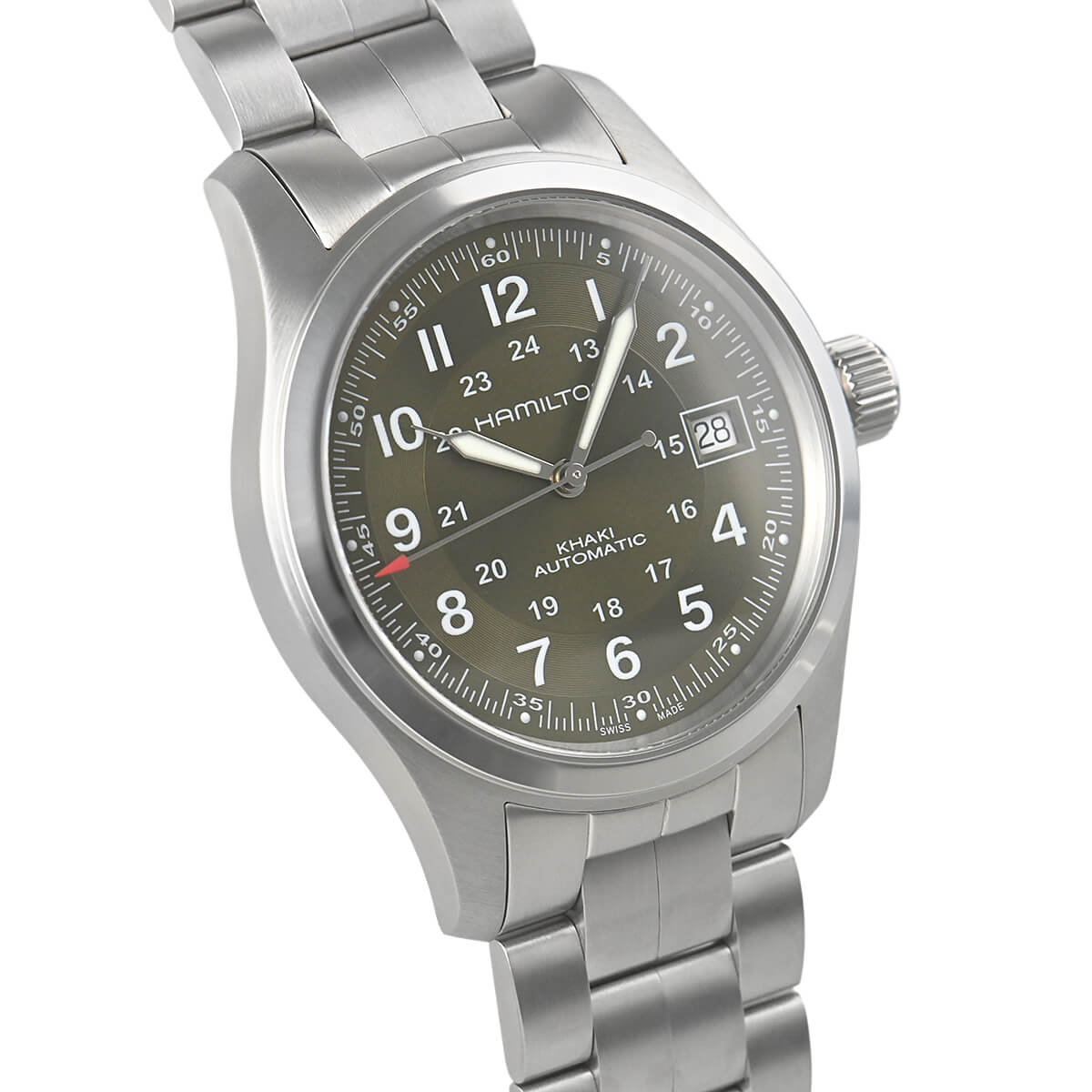 ハミルトンウォッチを象徴する「カーキ」シリーズ。こちらは38mmのケースサイズ「カーキフィールド オート」。