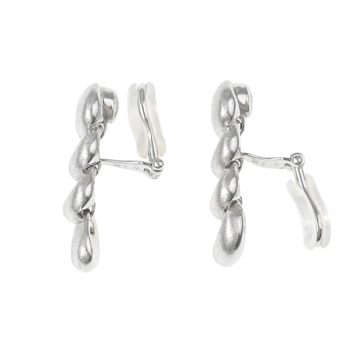 洗練された人々をゴールドの魅力を通して表現し、語ることができるジュエリーをつくるため、1990年イタリアのヴィチェンツァに設立された『Nanis(ナニス)』。ビュラン彫りという古来の職人技による特別な仕上げによって表現され、シルクのような柔らかさと輝きを与えられたナニスのジュエリーは、美しく、やわらかな光の反射をうみだします。オーバルフォルムの、美しい曲線とバランスのとれた“丸み”が魅力的なパーツを縦に繋げた、ホワイトゴールド製イヤリング。唯一無二の光を生み出す職人技が、現代的で洗練されたデザインだけでなく、身につける人の美しさを惹きたてます。経験を積んだ優れた職人が力をかけたり抜いたりしながら深い溝を彫り描く繊細なビュラン彫りが施されたモチーフが際立つ、時が流れても時代に左右されない、永久に語り継がれるナニスらしいイタリアンジュエリーです。