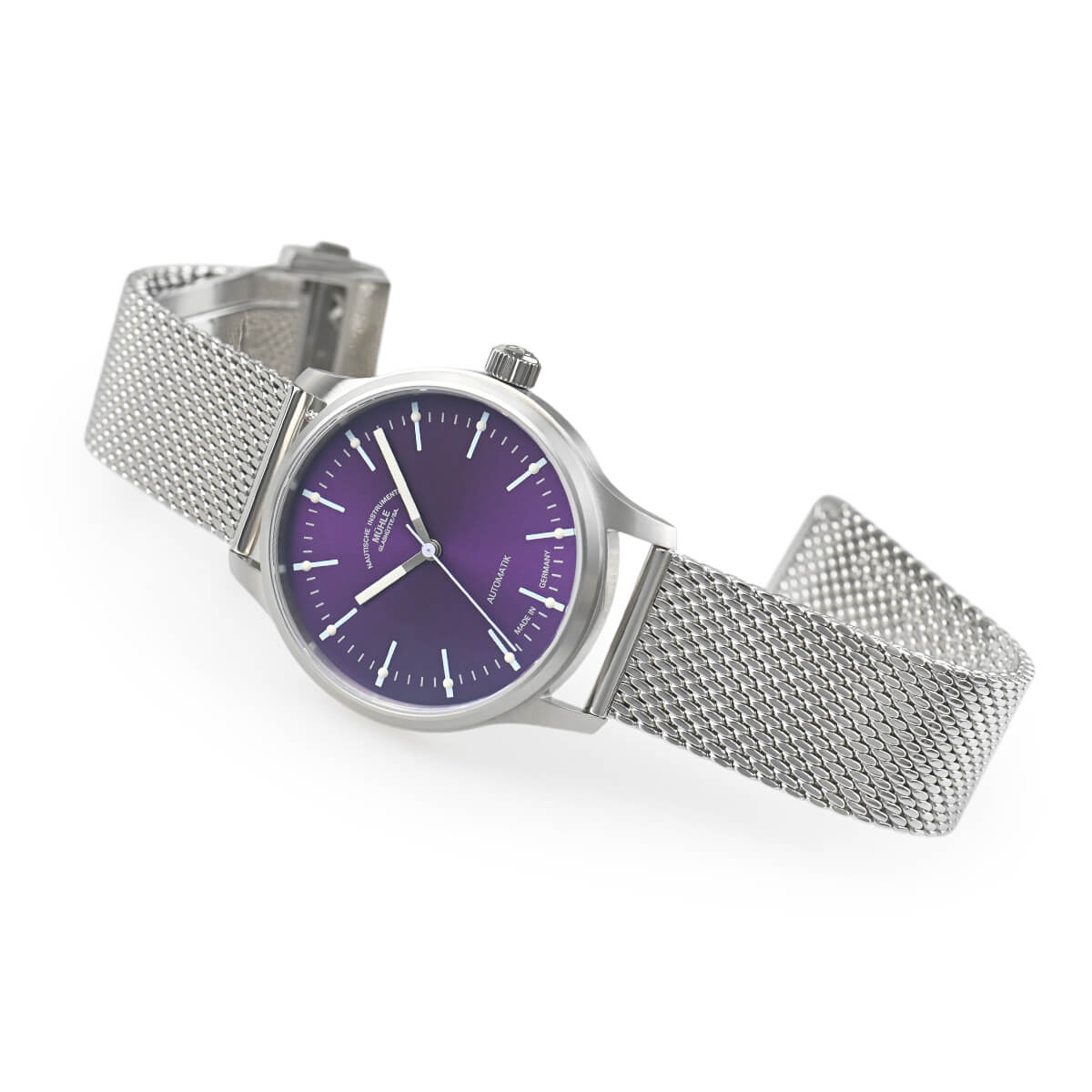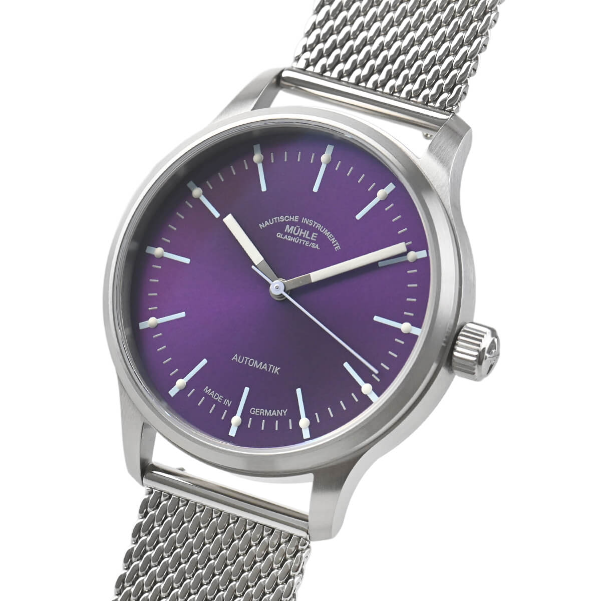 ドイツの時計産業のメッカであるグラスヒュッテに測定機械と精密機械のメーカーとして創業した「ミューレ・グラスヒュッテ」。こちらはデイリーウォッチとして2025年7月より日本に展開された「パノヴァ ヴァイオレット」。