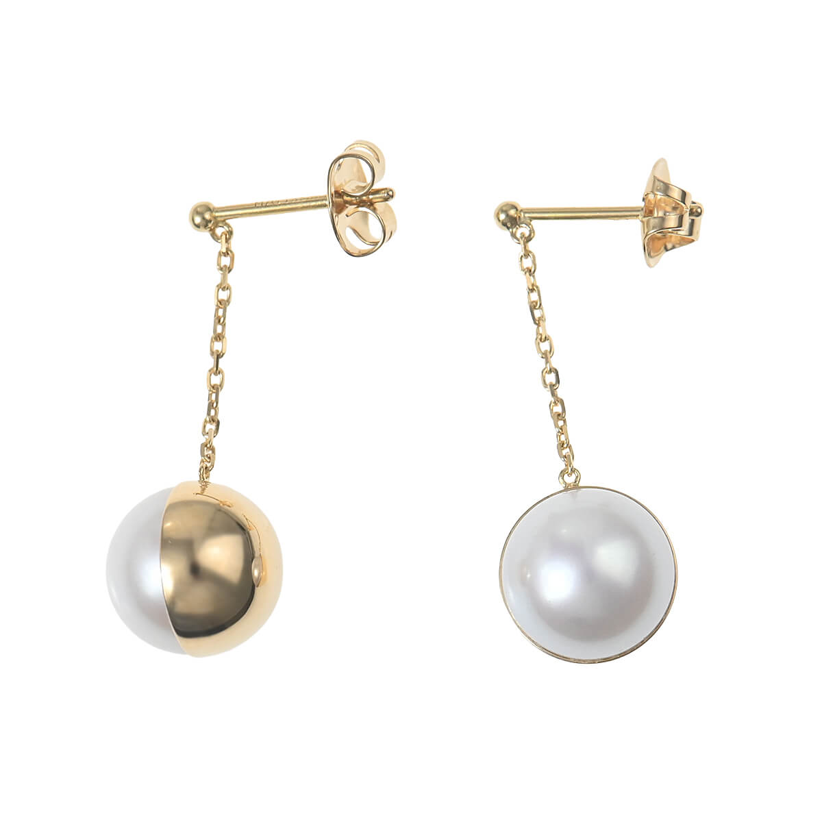 日本のプレミアムジュエラー『TASAKI(タサキ)』が、ロンドンを拠点に活動するジュエリーデザイナー、“メラニー・ジョージャコプロス(Melanie Georgacopoulos)”をクリエイティブ・ディレクターに迎え展開している「M/G TASAKI」コレクション。真珠をただの宝石から“素材”へと進化させた革新的なコレクションともいわれる、真珠の概念を壊したアーティスティックなコレクションラインです。イタリアの即興喜劇に登場するキャラクター“アルレッキーノ(道化師)”のフランス語読みである「アルルカン(Arlequin)」コレクションも「M/G TASAKI」ラインのひとつ。道化師が身にまとっている“色とりどりの菱形(幾何学模様)の衣装”からインスピレーションを得たこのコレクションは、伝統的なパールのイメージを覆すような、グラフィカルで楽しげなデザインが魅力です。半分を艶やかなゴールドで包み込まれた美しく大粒な淡水パールが繊細なチェーンにあしらわれて揺れる、異素材の融合と美しいコントラストが印象的な、モダンでお洒落なトレンド感たっぷりのパールジュエリーです。