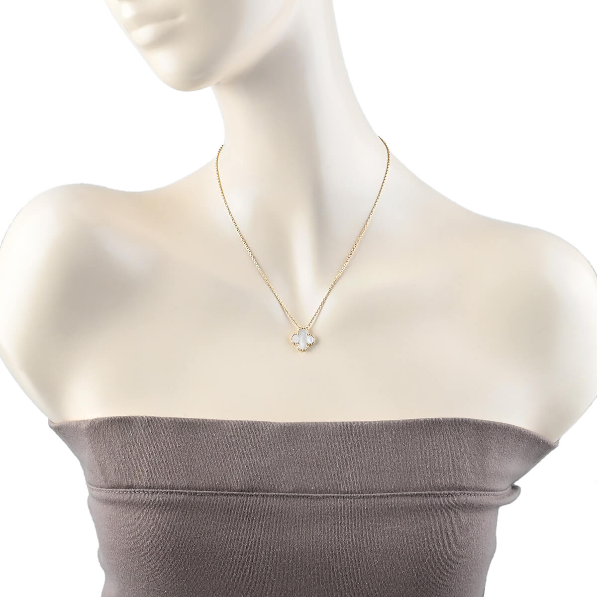 1968年に初めて誕生した幸運のシンボル「アルハンブラ」の特徴を受け継ぎ、『VanCleef&Arpels(ヴァンクリーフ&アーペル)』ならではの独創性と時を超えるエレガンスを湛える「ヴィンテージアルハンブラ」コレクションは、エレガントで清楚、控えめでありながら洗練された、メゾンを代表するアイコン。愛らしく可憐なゴールドビーズに縁取られたマザーオブパールでデザインされた幸運のシンボルが、優し気にデコルテに寄り添う「ヴィンテージアルハンブラ」ペンダントです。たくさんつけてもしつこくなく、むしろ“素敵”にまとまる、不思議な個性をもつアルハンブラはコレクションで揃えていって、バリエーションを魅せるのも。ひとめでそれとわかるラッキーチャームを、どのタイミングで、どのカラーで迎えるかを考えるのも楽しい、エレガントに映えるハッピーな魅力にあふれたコレクションジュエリーです。