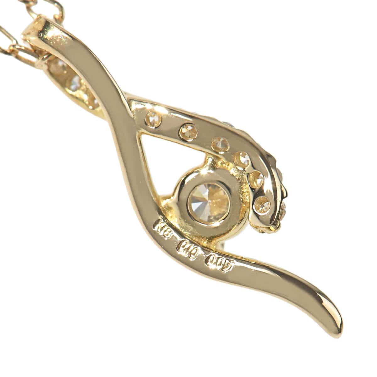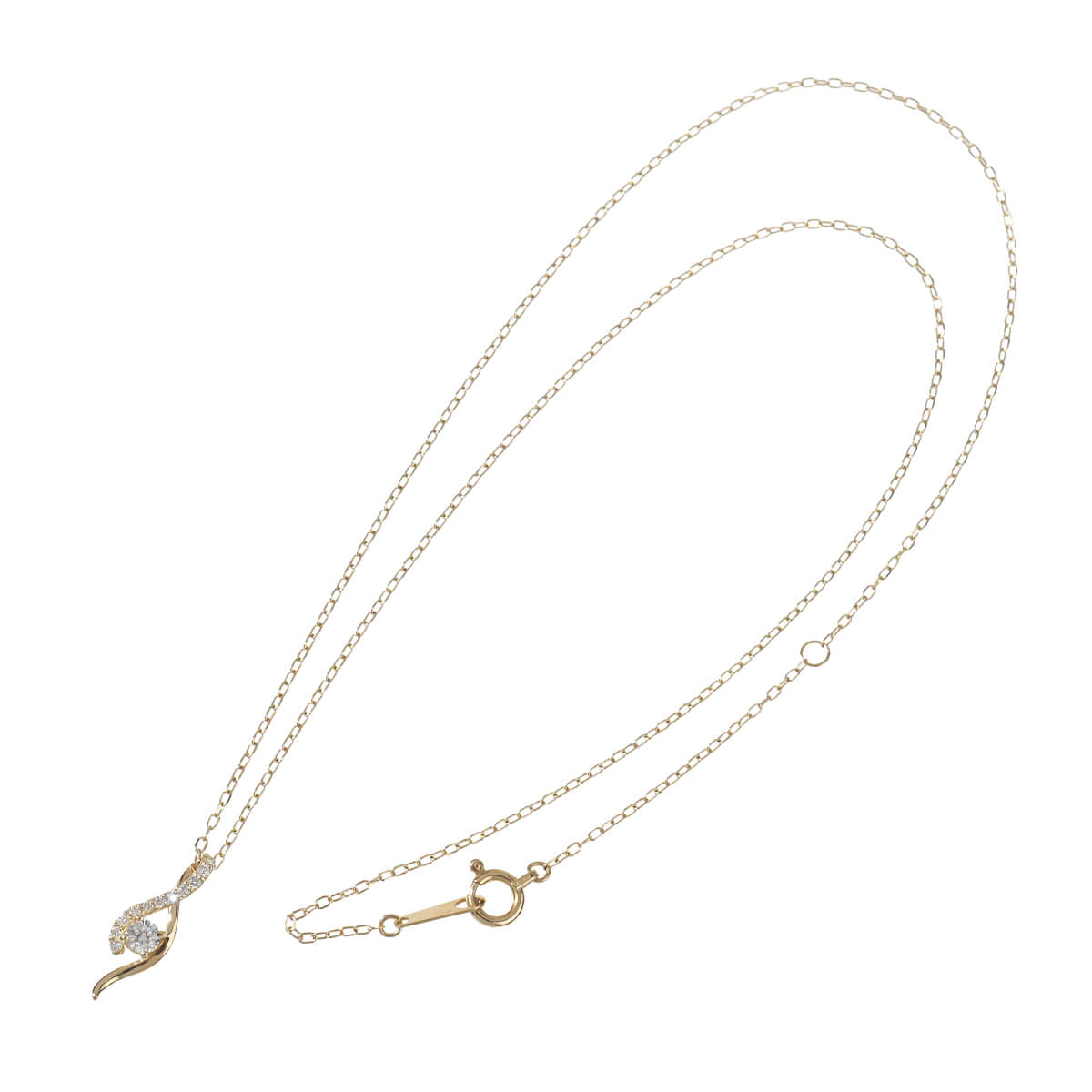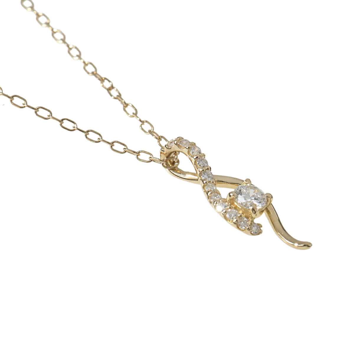 繊細なカットアズキチェーンに、流れるようなラインを描くダイヤモンドモチーフがあしらわれたイエローゴールド製ペンダントネックレス。肌に溶け込むようにきらめくチェーンと、繊細ながらも美しい存在感を放つダイヤモンドの輝きが、どんなスタイリングにも可憐な品の良さを添えてくれますね。ギフトにも素敵な、コストパフォーマンスの高さも魅力のダイヤモンドジュエリーです。