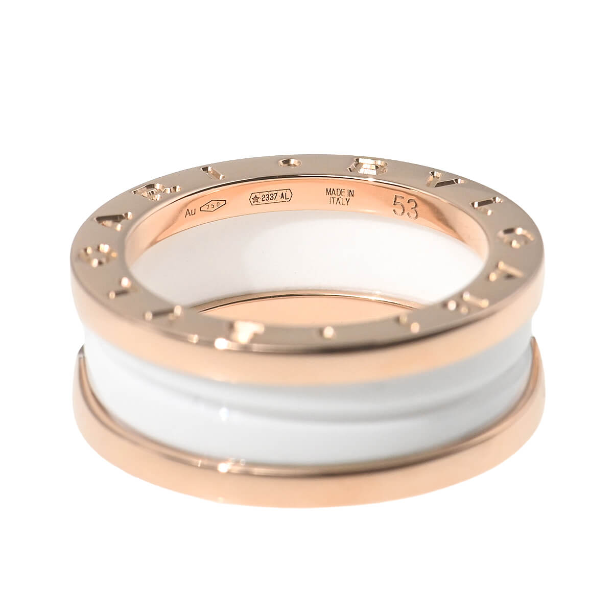 70年代より愛されているコイル状のモチーフの「トゥボガス」、そして「BVLGARI-BVLGARI(ブルガリ ブルガリ)」のダブルロゴ、メゾンを代表するこのふたつのクラシック・アイコンをバランス良く組み合わせ、グラフィックな遊び心とエレガンスが融合した、『BVLGARI(ブルガリ)』「B-ZERO1」は新世紀のはじまりを祝して1999年に世界デビューを果たしました。このユニークなコレクション名は、ブルガリの「B」と、同コレクションのスタートをあわらす「01」を組み合わせたものだそう。創造的なブルガリの世界観をまったく新しい方法で表現する、ホワイトセラミックの螺旋が描く流麗な曲線と、そのボリュームがもたらすフォルムに、堂々たるアイデンティティを感じる2バンドリング。イタリアンデザインの真の象徴でもあり、シンプルでありながら大胆で特徴的なスパイラルが、ジュエリーアイコンのカリスマ的精神を表現しています。ピンクゴールドとホワイトセラミックのお洒落でフェミニンなコンビネーションが美しく、ひとめ見てブルガリとわかる、ブランドの個性あふれるアイコニックなコレクションジュエリーです。