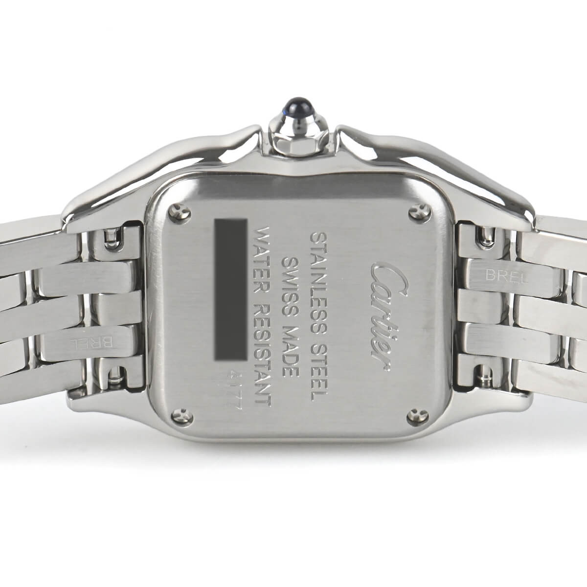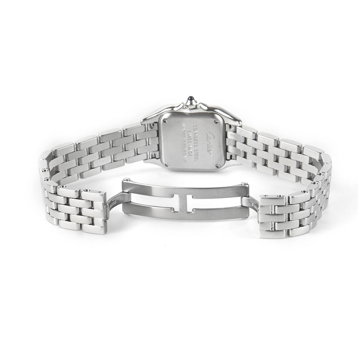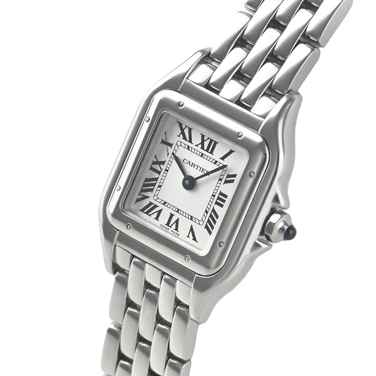 1983年に誕生しカルティエを代表するアイコンウォッチとなった「パンテール」。それから30年以上経過した現代に「パンテール ドゥ カルティエ」として甦りました。こちらのSMサイズは縦30mm×横22mmで、厚みは6mmの薄型ケースを採用します。