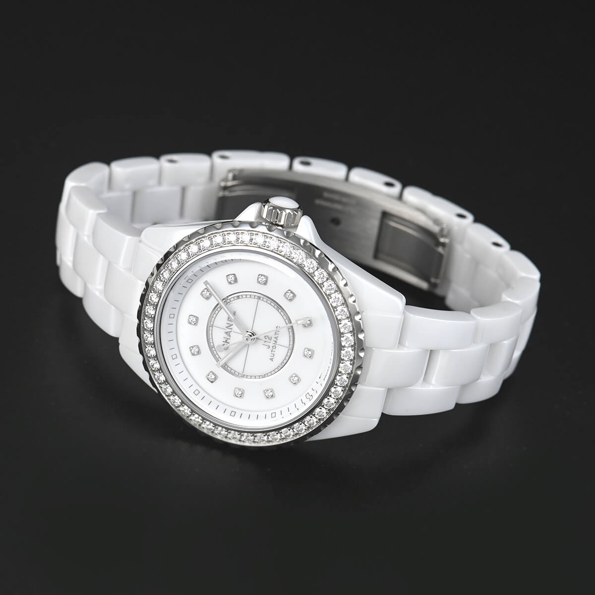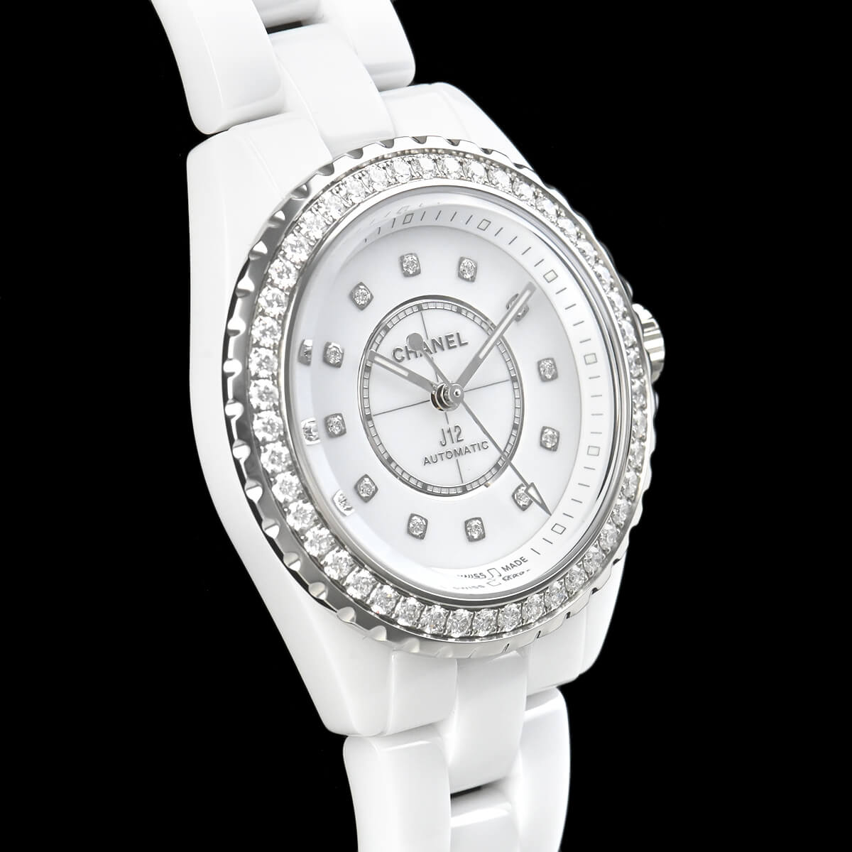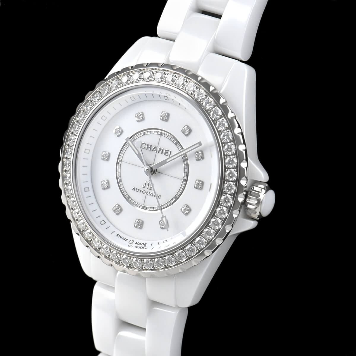 すっかりスポーティーなラグジュアリーウォッチとして定着した「J12」。こちらはホワイトセラミック製の33mmケースのレディースモデルです。