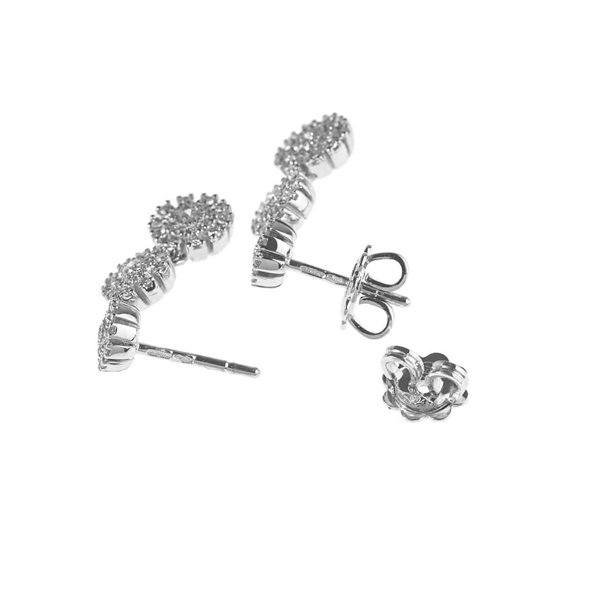 イタリアを代表する老舗ジュエラー『DAMIANI(ダミアーニ)』が、芸術やジュエリーをこよなく愛し、卓越したファッションセンスによりその時代のトレンドを牽引したイタリアの初代王妃“マルゲリータ”の美しさにインスパイアされ、オマージュを捧げた「MARGHERITA(マルゲリータ)」コレクション。王妃の名“マルゲリータ”を意味するお花“マーガレット”のモチーフに、ダミアーニの誇る熟練の職人がそのひとつひとつに高貴なマテリアルとプレシャスストーンで可憐な命を吹き込み、上品でロマンティックなジュエリーに仕上げられています。サイズの異なるポジティブでオプティミスティックなデザインのマーガレットフラワーが、縦に3輪並んで揺れるホワイトゴールド製ピアス。フレキシブルに揺れ動く、ダイヤモンドで象られた優美なマーガレットフラワーが永遠に煌めき続けます。永遠に煌めき続ける優美な花の美しさを表現したタイムレスなモチーフが耳元でひときわ美しく咲き誇り、光をとらえてドラマチックに煌めくピアスです。