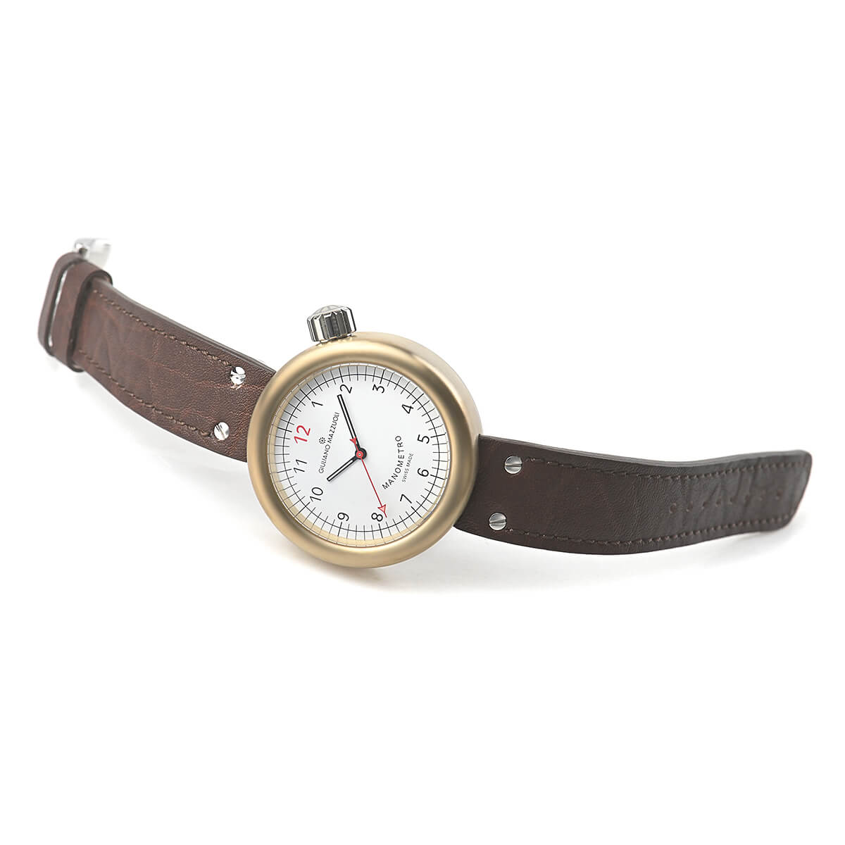 こちらの【マノメトロ ブロンズ】は、ケース素材にブロンズを採用しており、銅ならではの経年による変色もお楽しみ頂けます。