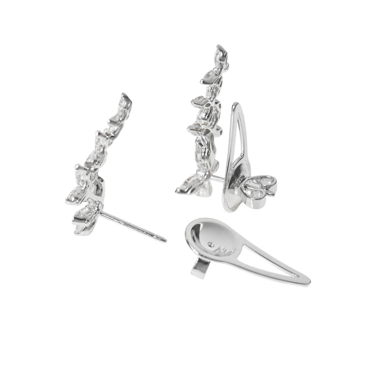 “21世紀のキング オブ ダイヤモンド”と称されるイギリスを代表するダイヤモンドジュエラー、究極の宝石商『GRAFF(グラフ)』はその歴史を通して、この一見シンプルに見える“バタフライ”というモチーフから多くのインスピレーションを得て、さまざまな新しいデザインを世に送り出してきました。万華鏡のように煌めくプティバタフライが耳元を舞うように彩る、「クラシック バタフライ」クライマーピアス。マーキスとペアシェイプ、極上のダイヤモンドで表現された耳に沿うように羽ばたく4羽の優美な蝶々が織りなす、繊細な輝きと躍動感にあふれたデザインがプレイフルな魅力を放ちます。どんなスタイリングにも洗練された個性を添えながら、身につけるひとを優美に、エレガントに惹きたてる、コンテンポラリーでラグジュアリーなハイジュエリーです。