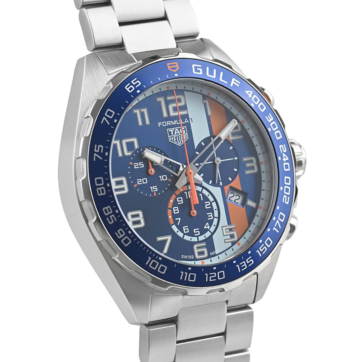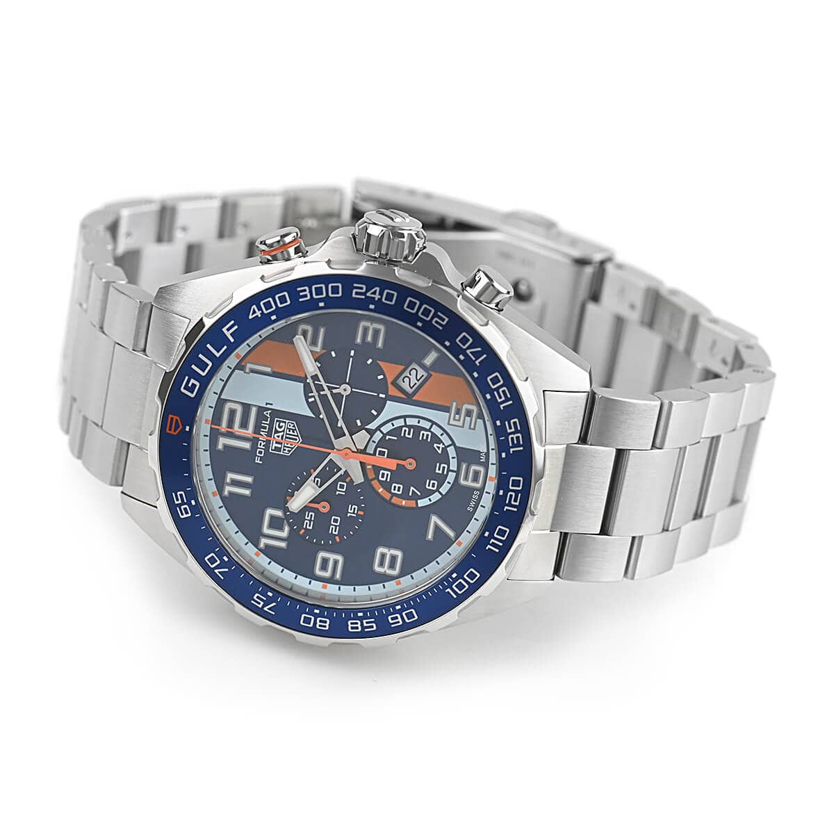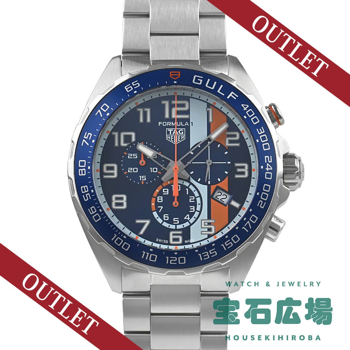参考定価357.500円のところ、裏蓋に傷がある為、【92.500円引き】の特別価格となります。新品ですのでとてもお薦めの商品です!F1をイメージして作られたタグ・ホイヤーの「フォーミュラ1 クロノグラフ ガルフスペシャルエディション」。