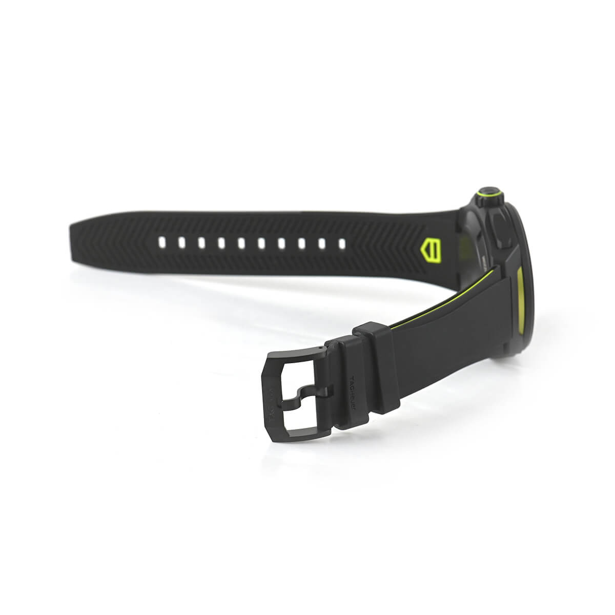 ブラックオパーリンのダイヤルにはイエローのラッカー仕上げトラックを配置し、視認性を向上させつつ、シリーズのレーシングDNAを色濃く反映。さらに、ブラックラバーストラップが装着感の快適さを高め、アクティブなシーンでもストレスのない着用感を実現します。
