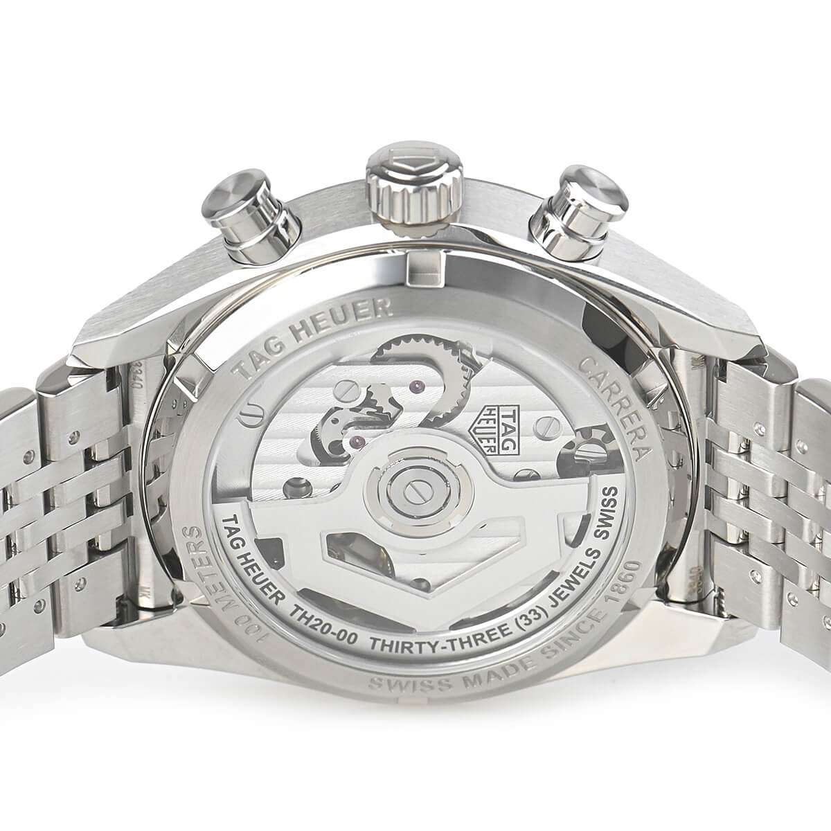 文字盤のデザインは、ホイヤー01搭載モデルが縦三つ目のクロノグラフであったのに対して、TH20-00を搭載するこちらのモデルは、バランスの良い下三つ目のクロノグラフとなっています。1960年代のレーシングウォッチを彷彿とさせるクラシックなデザインに、ケースサイズも現代的な大きさの39mmを採用。
