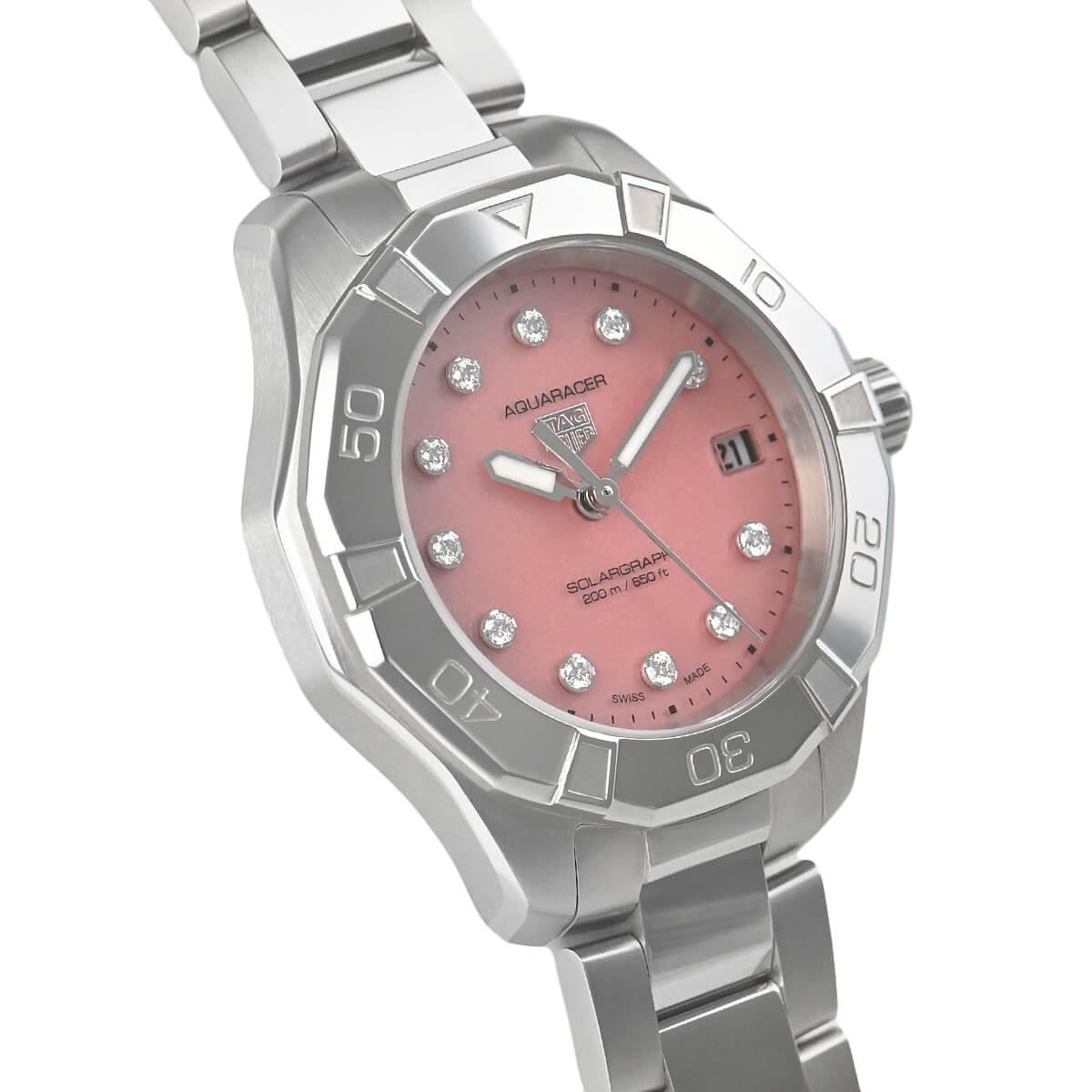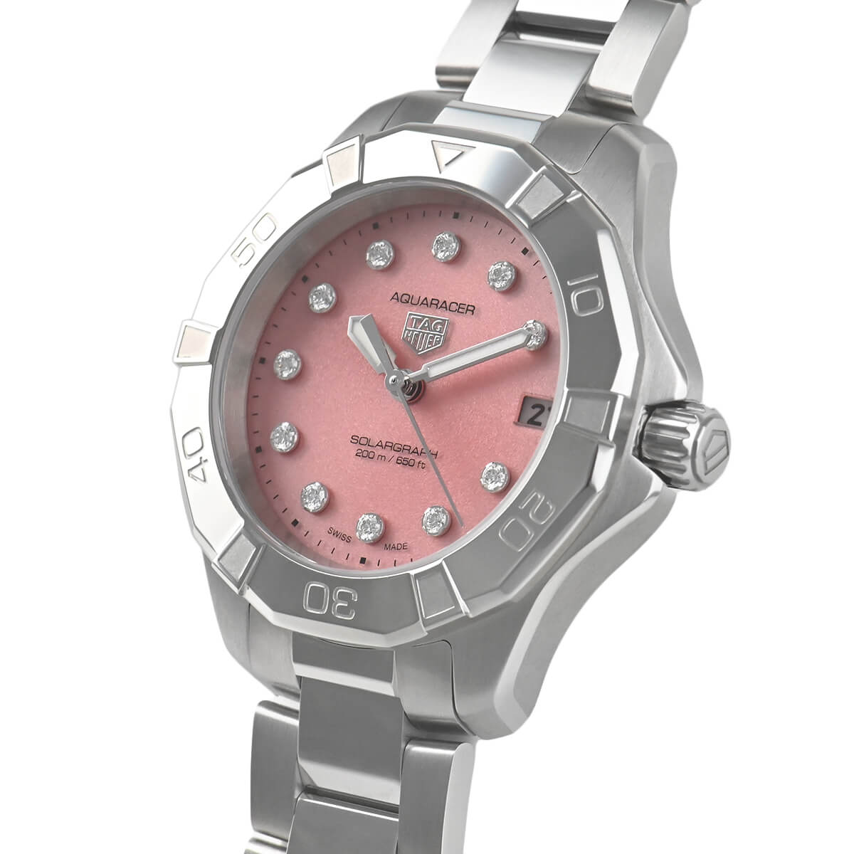 スポーティーなデザインで人気を博す「アクアレーサー」。こちらは34mmケースを採用したレディースのアクアレーサー【アクサレーサープロフェッショナル200ソーラーグラフ】