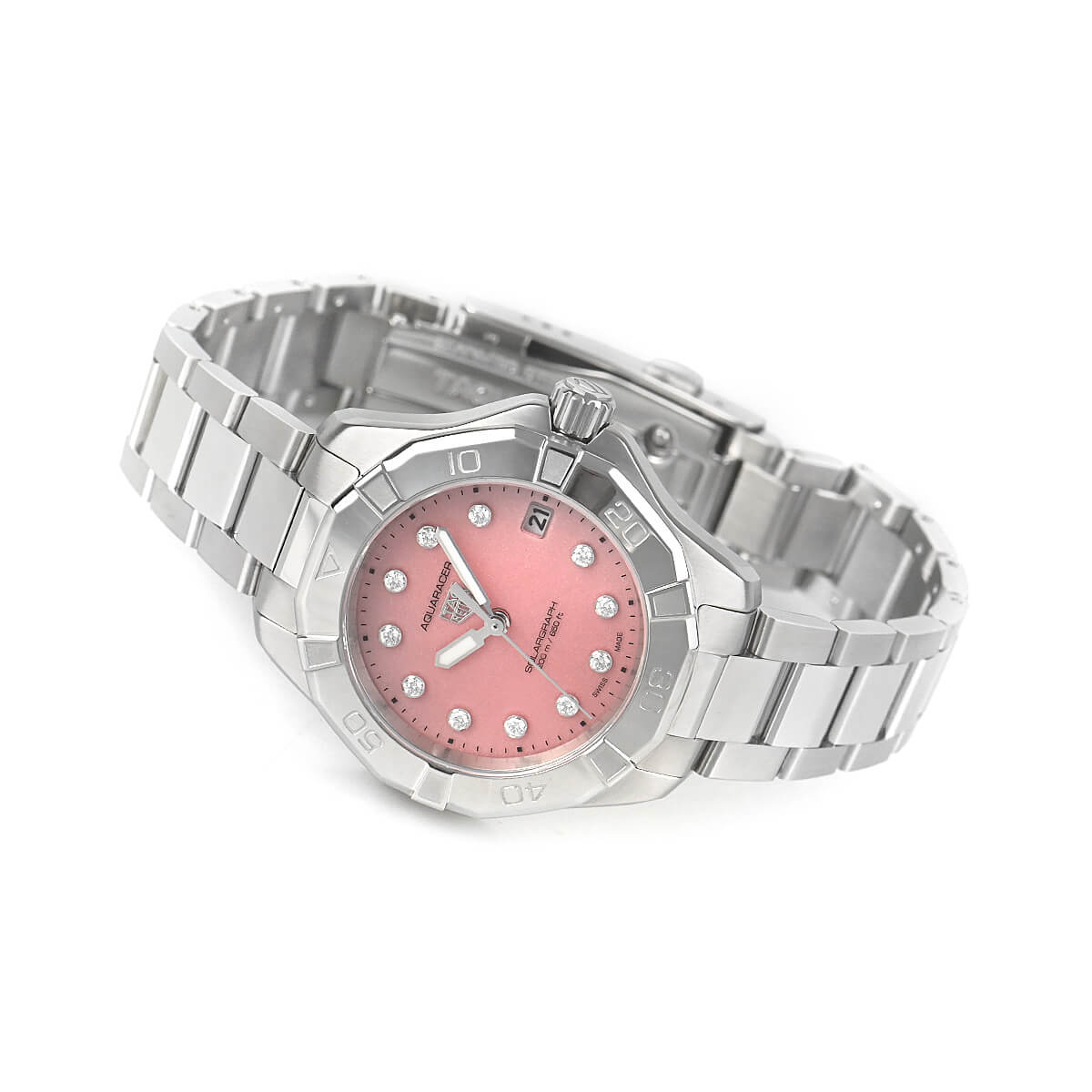 文字盤にはレディースモデルらしくダイヤモンドを11ポイントセッティングし、エレガントな雰囲気です。