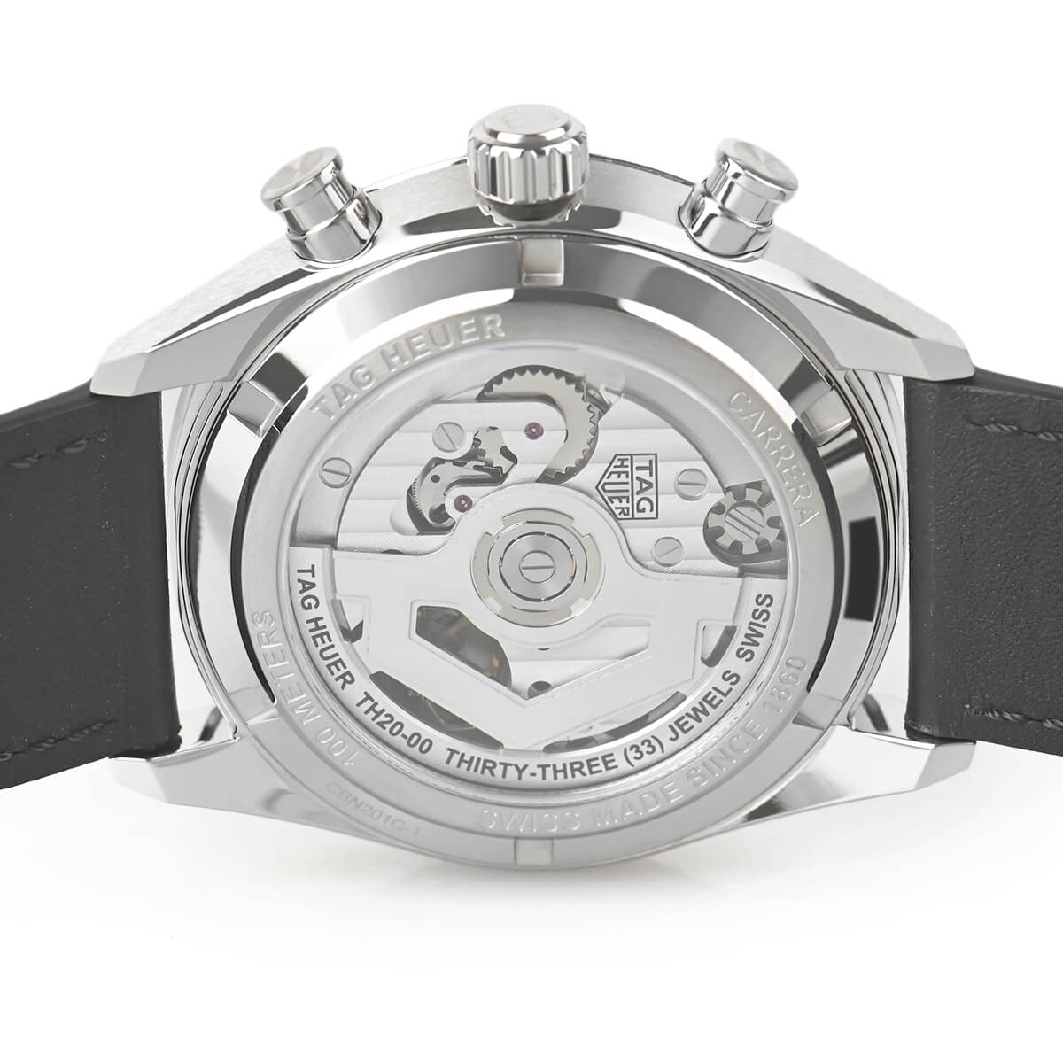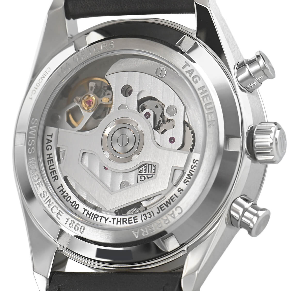 文字盤のデザインはホイヤー01搭載モデルが縦3つ目のクロノグラフであったのに対して、TH20-00を搭載するこちらのモデルはバランスの良い下3つ目のクロノグラフとなっています。