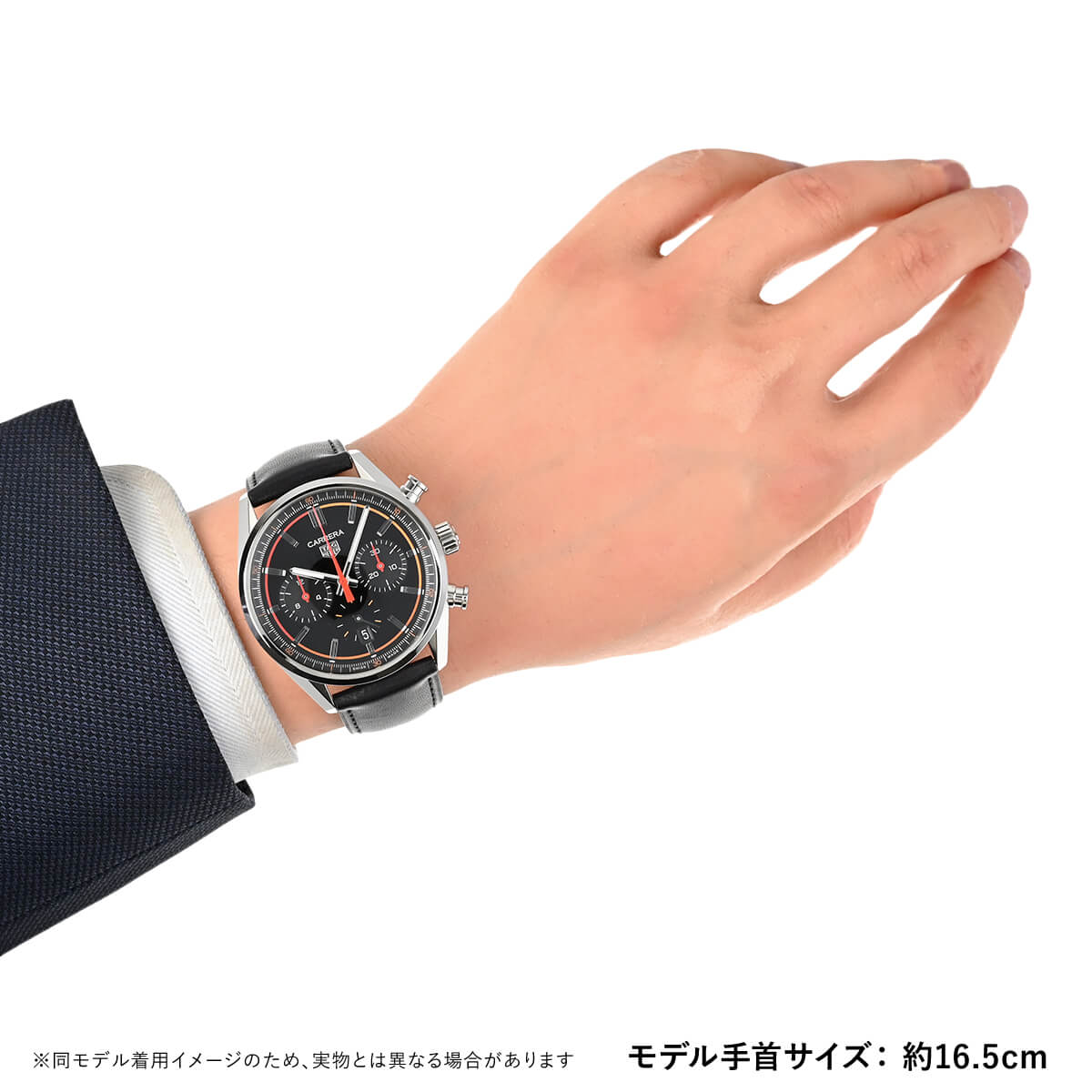 敢えてタキメーターベゼルを外すことで、シンプルな印象となっていますのでスーツスタイルにも合わせやすいクロノグラフです。