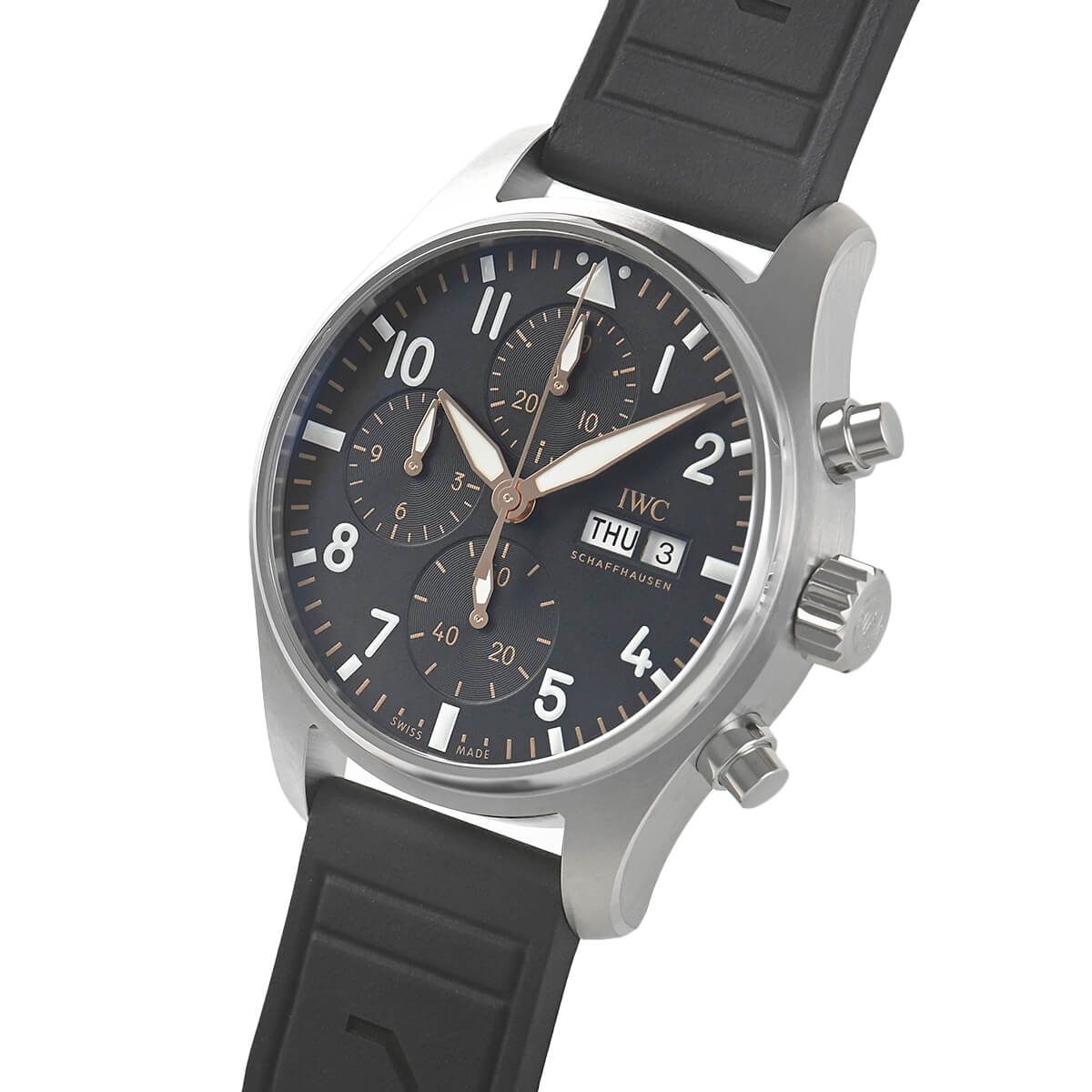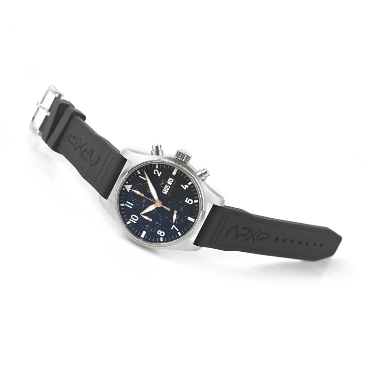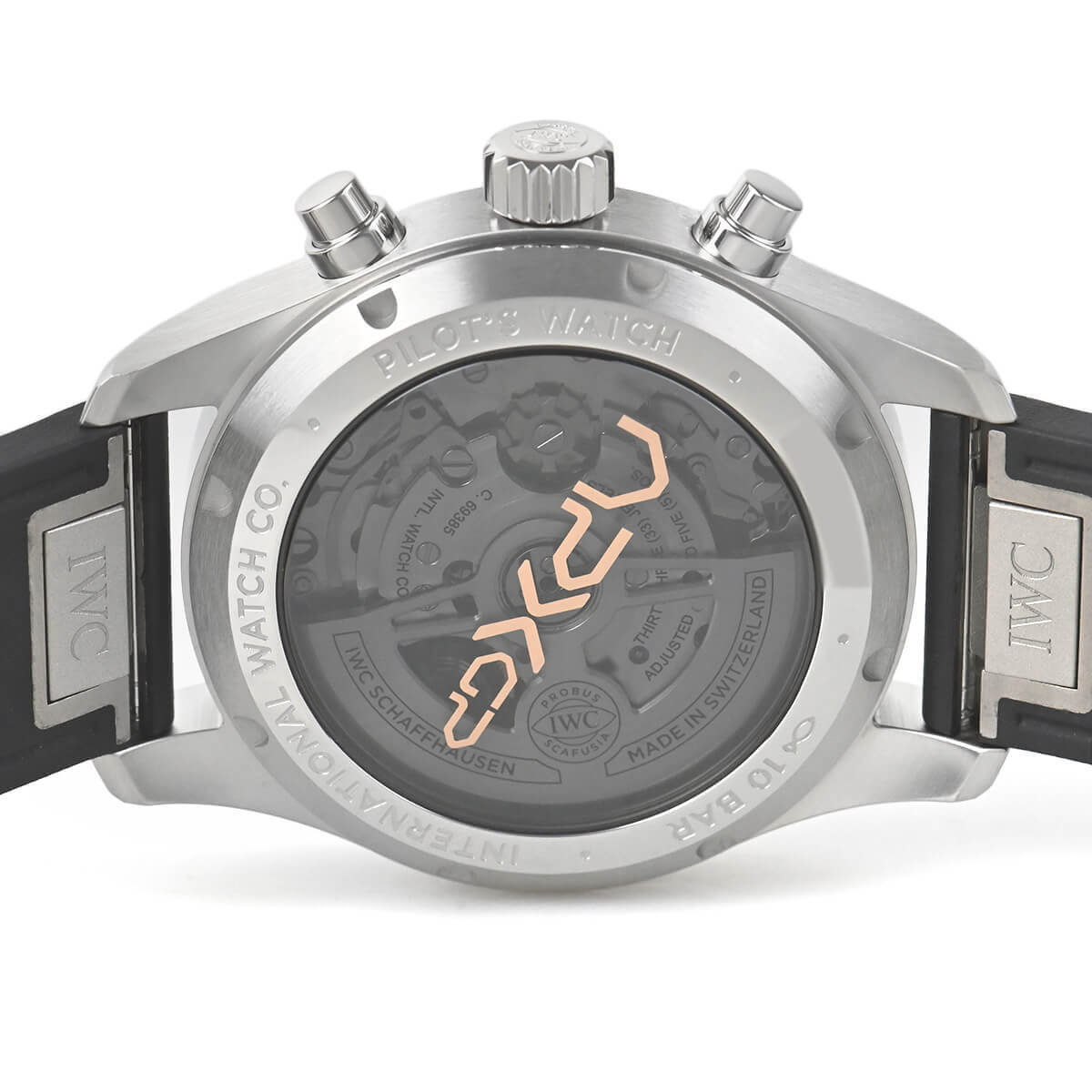 映画『F1/エフワン』に登場する架空の「APXGP」チームに捧げられた特別モデル【パイロット・ウォッチ・クロノグラフ 41 “APXGP”】は、チームのカラーであるブラック、ゴールド、ホワイトの要素を取り入れたデザインが特徴です。直径41mmのケースには46時間パワーリザーブの自社開発キャリバー69385を搭載。