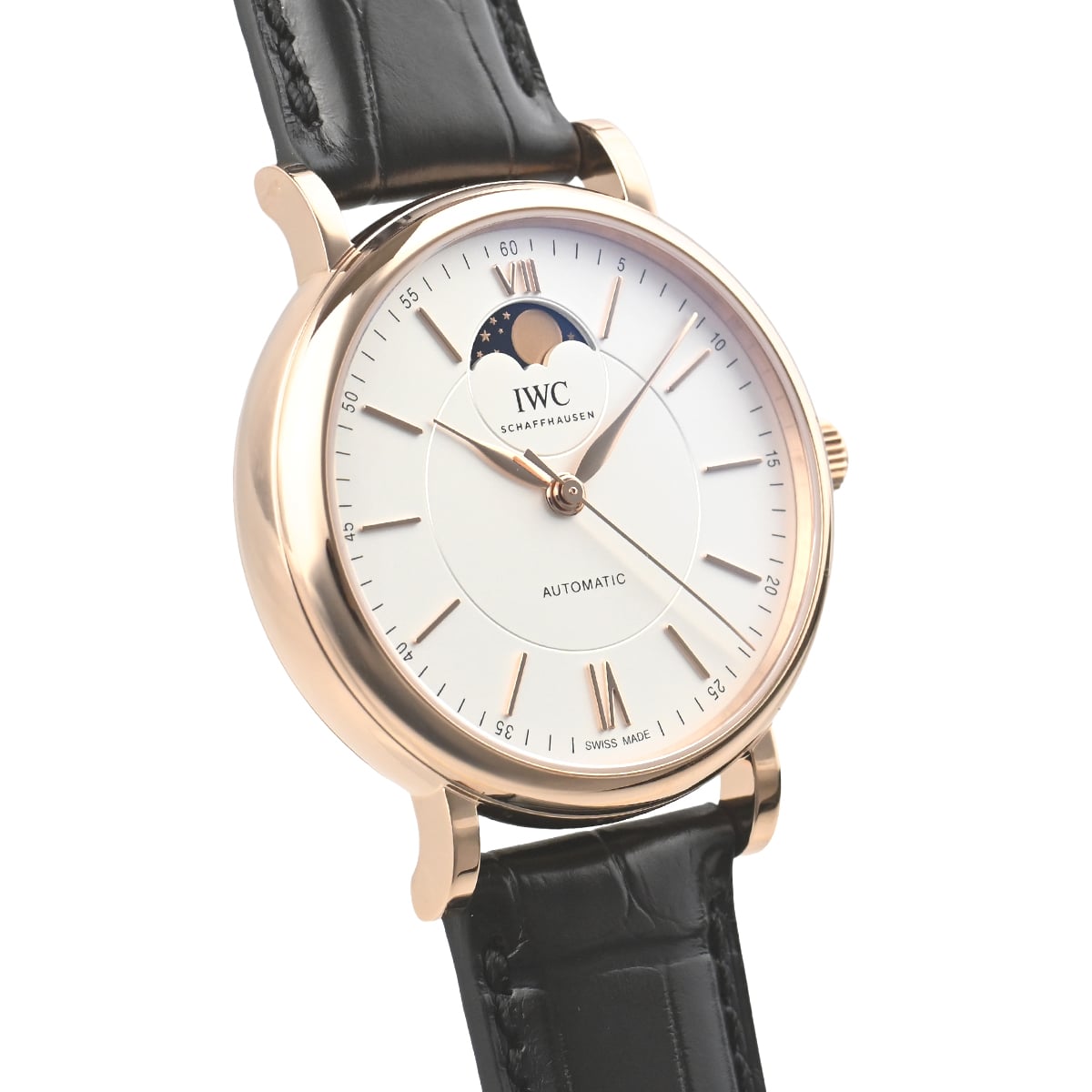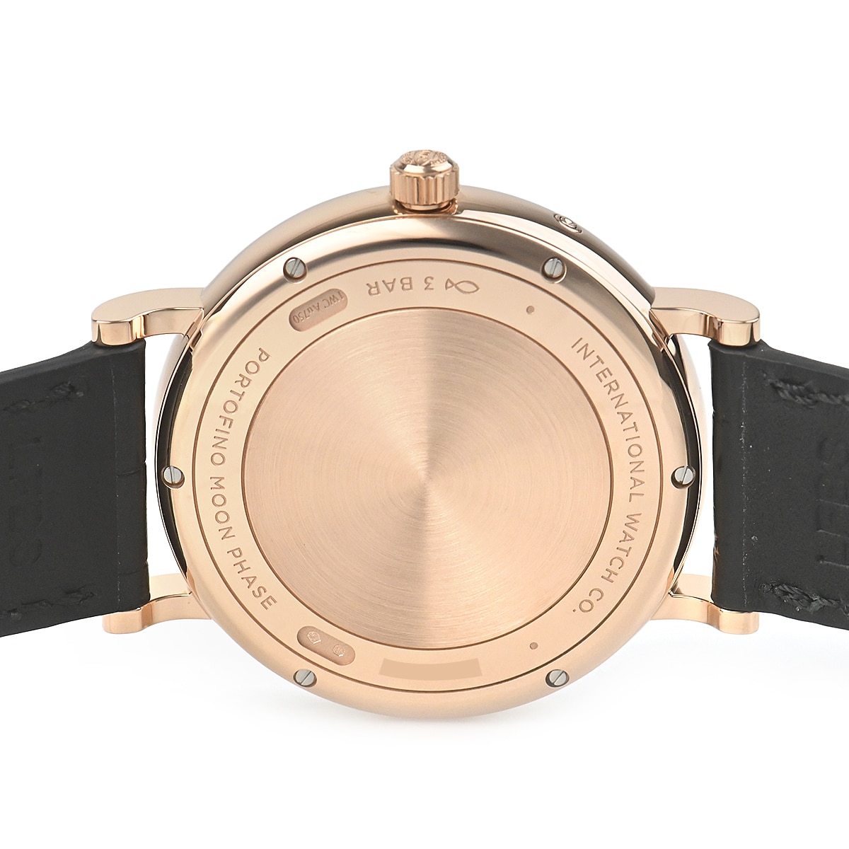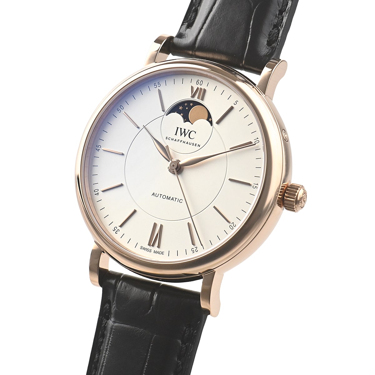 ケース径40mmの【ポートフィノ オートマチック ムーンフェイズ】は、文字盤12時位置にムーンフェイズを配置。デザイン性を損なうことなくキレイに収まっております。