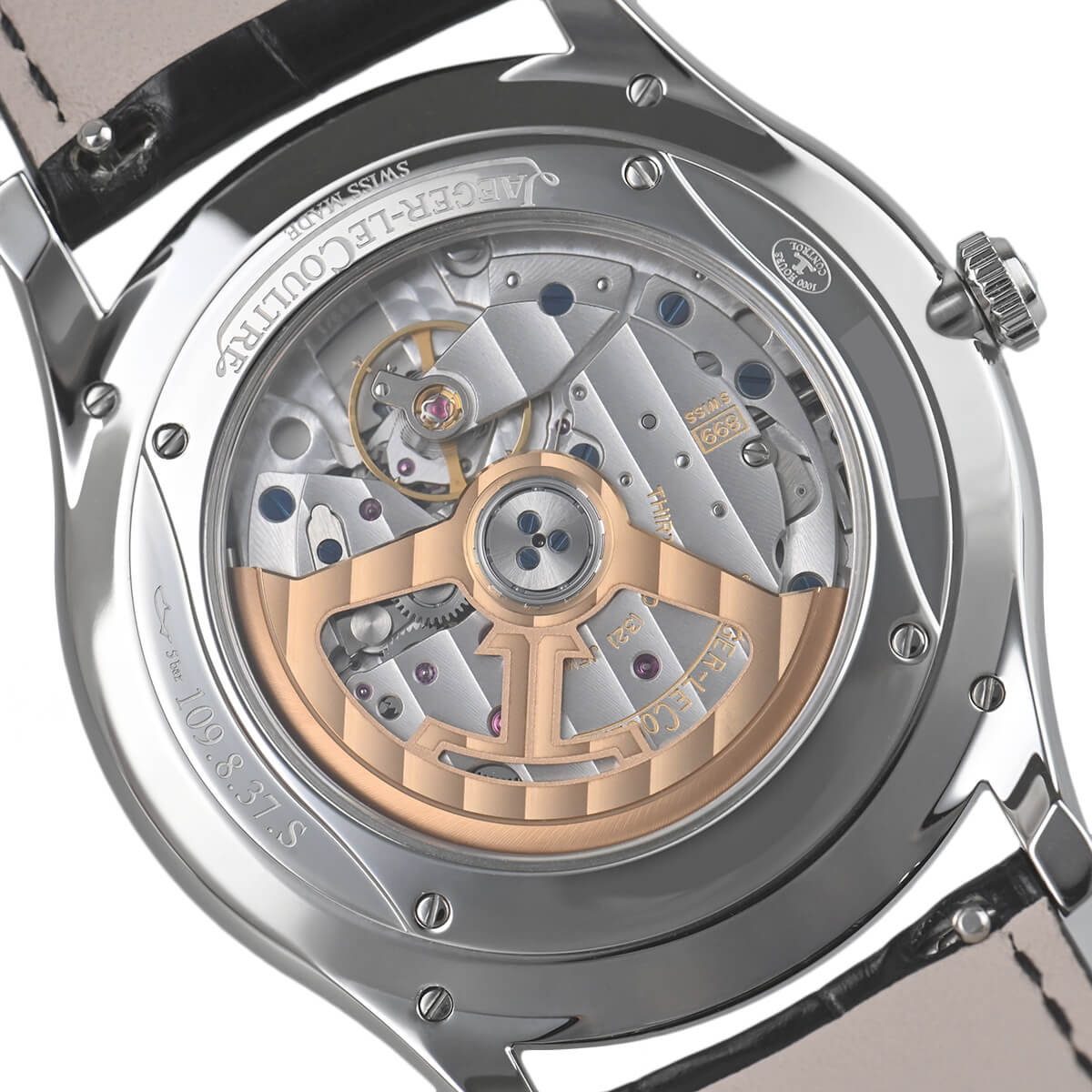 こちらの【マスター・ウルトラスリム・デイト】は、厚さを7.8mmに抑えた39mm径の程よい大きさのケースに、自動巻ムーブメント899を納めたモデルで6時位置にはデイト表示機能も搭載します。