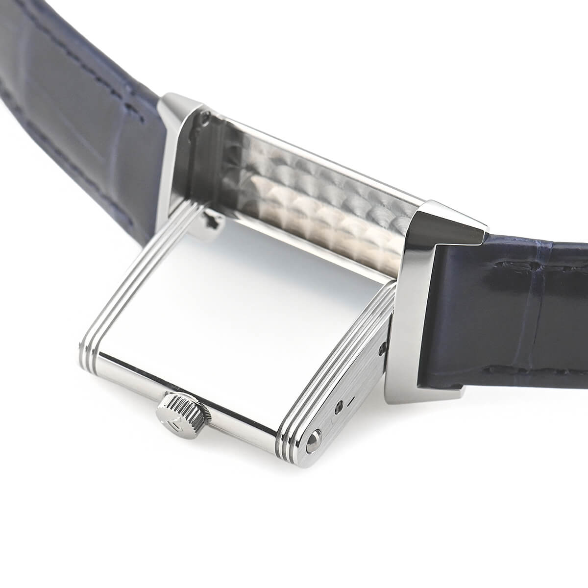 レベルソ「クラシック」の中でもシンプルなデザインの「モノフェイス」。モデル名の意味する通り、文字盤は片面のみで、裏面はソリッドケースとなっているシリーズです。ケースを反転することで文字盤を保護する、レベルソ本来の仕様となっています。