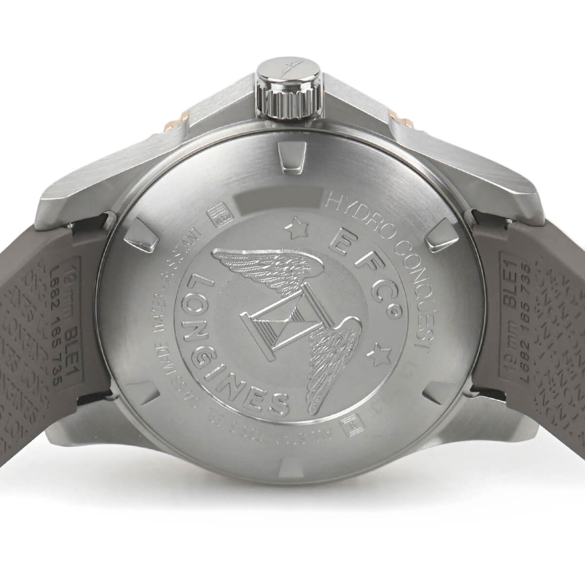 エレガントさと優れた性能を持つロンジンのスポーツコレクション【ハイドロ コンクエスト】シリーズ。こちらは強靭で耐傷性に優れたセラミック製ダイビングスケールベゼルを採用したプロフェッショナルダイバーウォッチです。