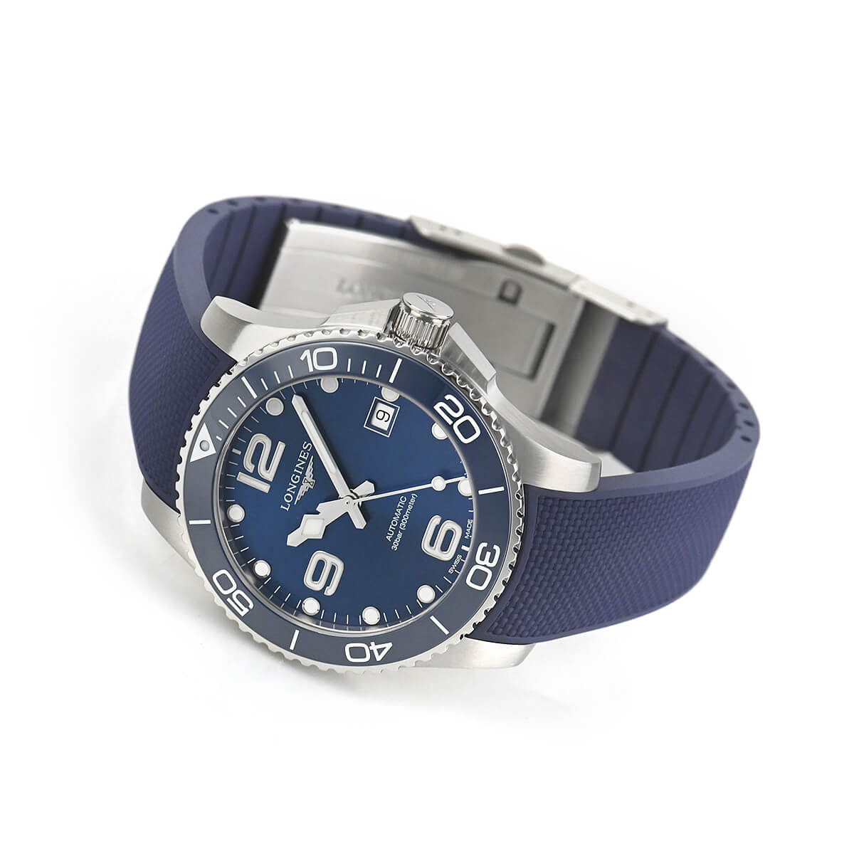 エレガントさと優れた性能を持つロンジンのスポーツコレクション【ハイドロ コンクエスト】シリーズ。こちらは強靭で耐傷性に優れたセラミック製ダイビングスケールベゼルを採用したプロフェッショナルダイバーウォッチです。