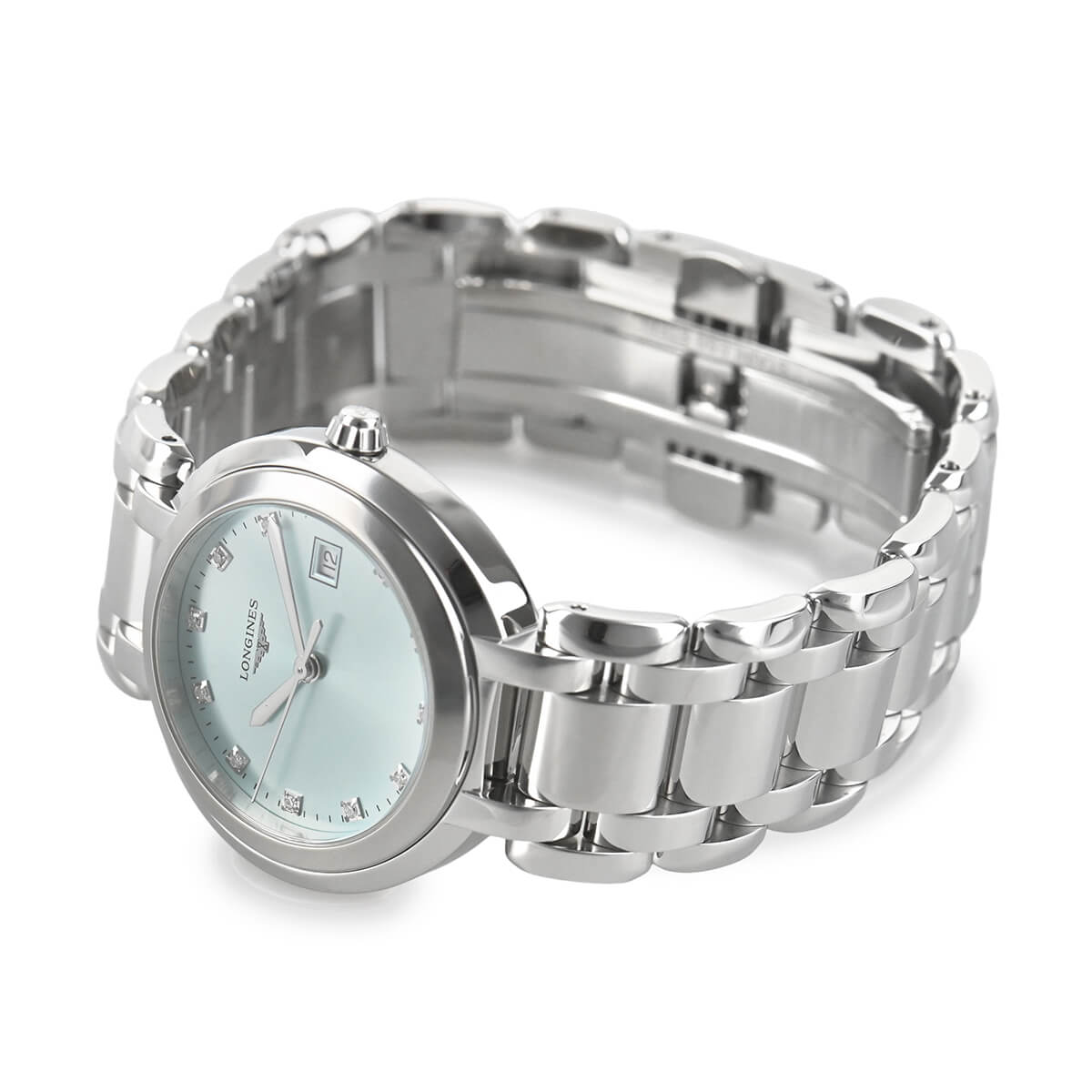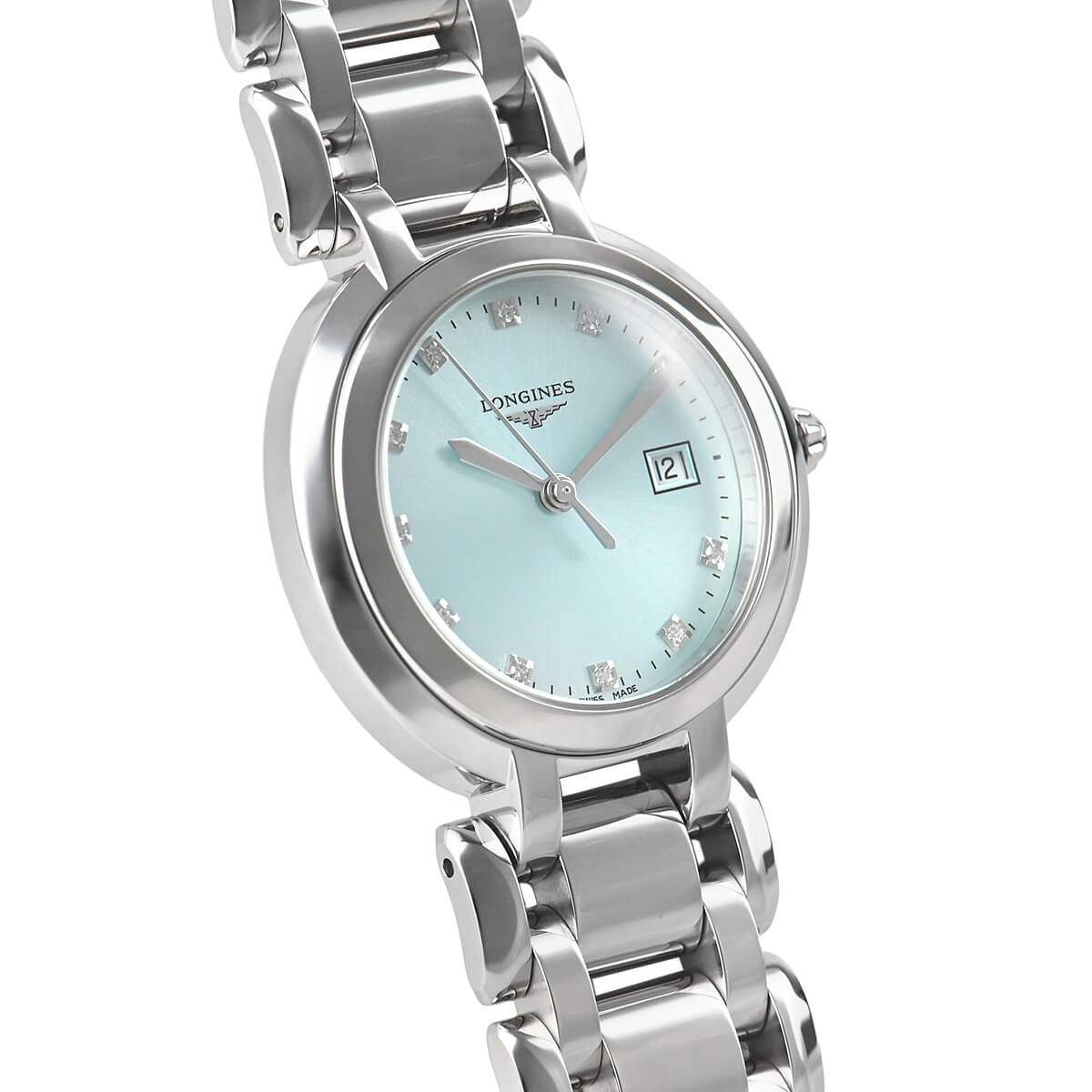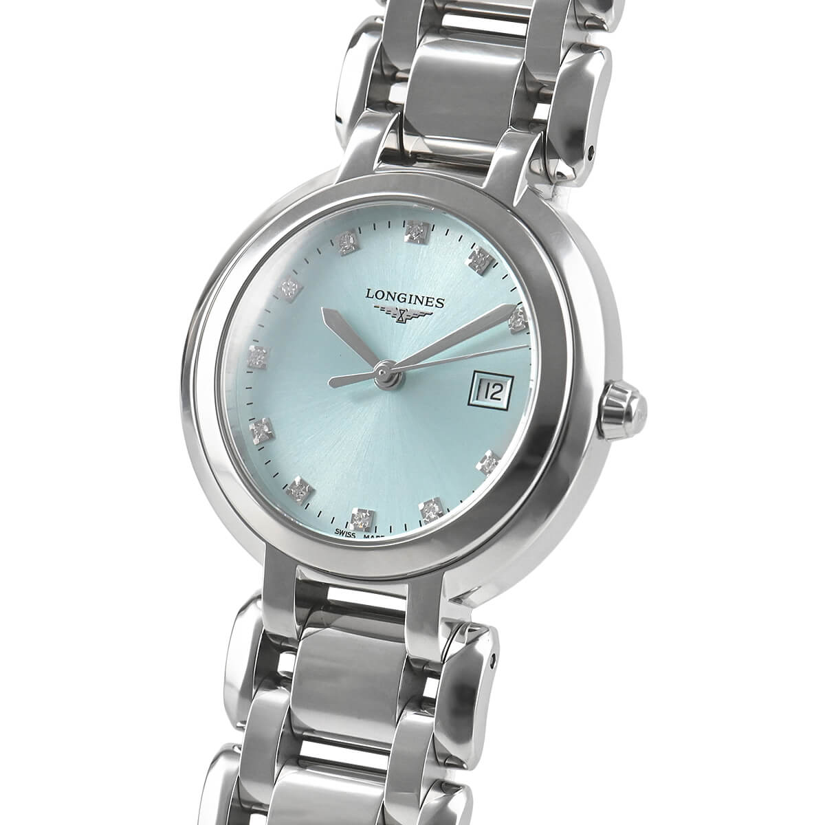 天体の美しさをオマージュしてデザインされた「プリマルナ」。長い歴史を誇る名門ロンジンの中では、比較的新しいラインになります。美しいブルー色ダイアルには、レディースモデルらしくダイヤモンドインデックスが輝いています。