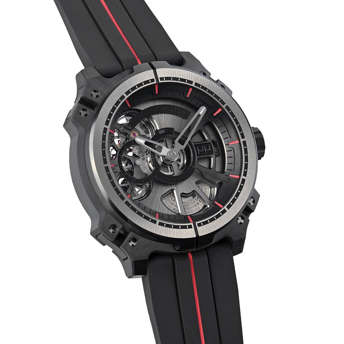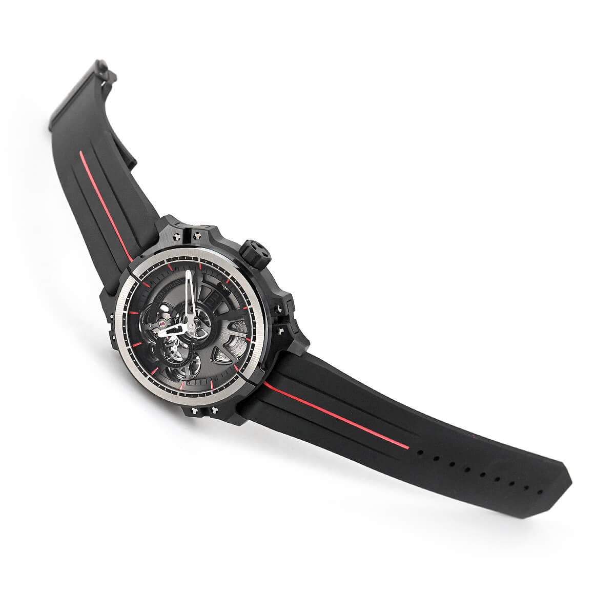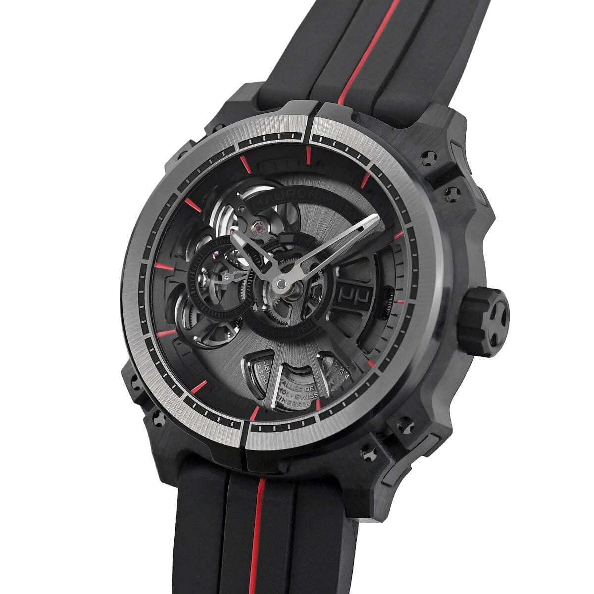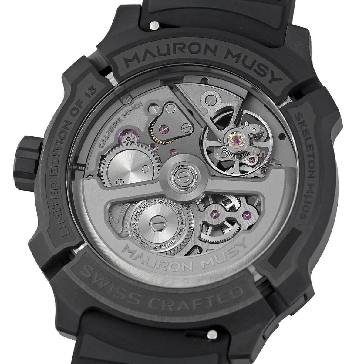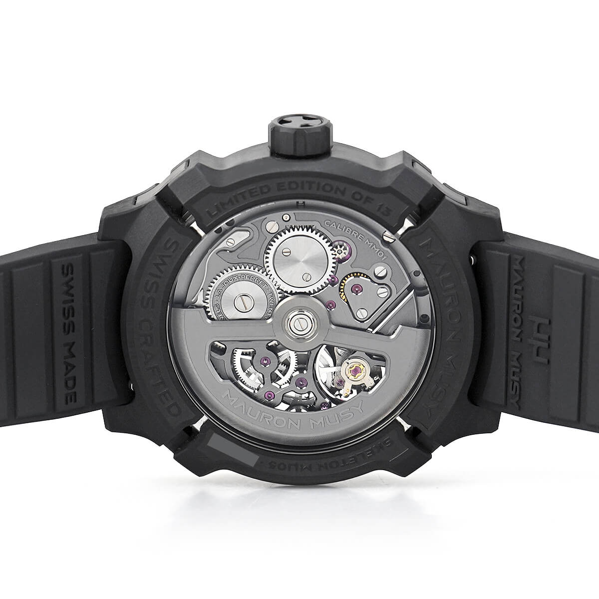 44mmのケースは、軽量なグレード5のチタン(ブラックDLC)を採用し、美しい仕上げの自動巻きムーブメントMM01-SKを搭載。