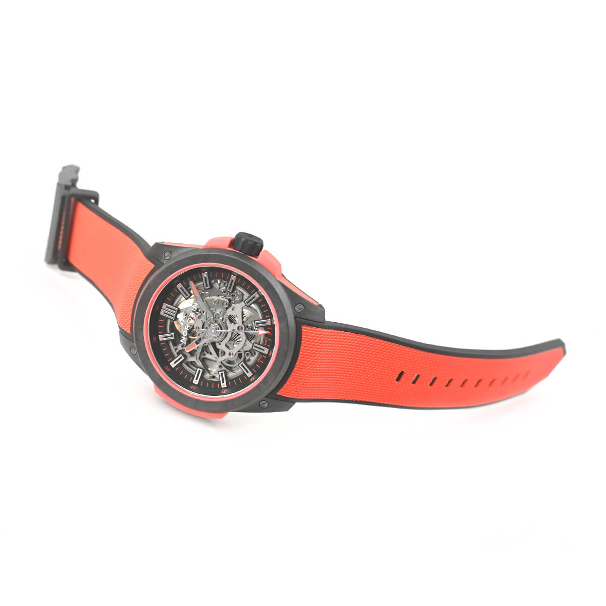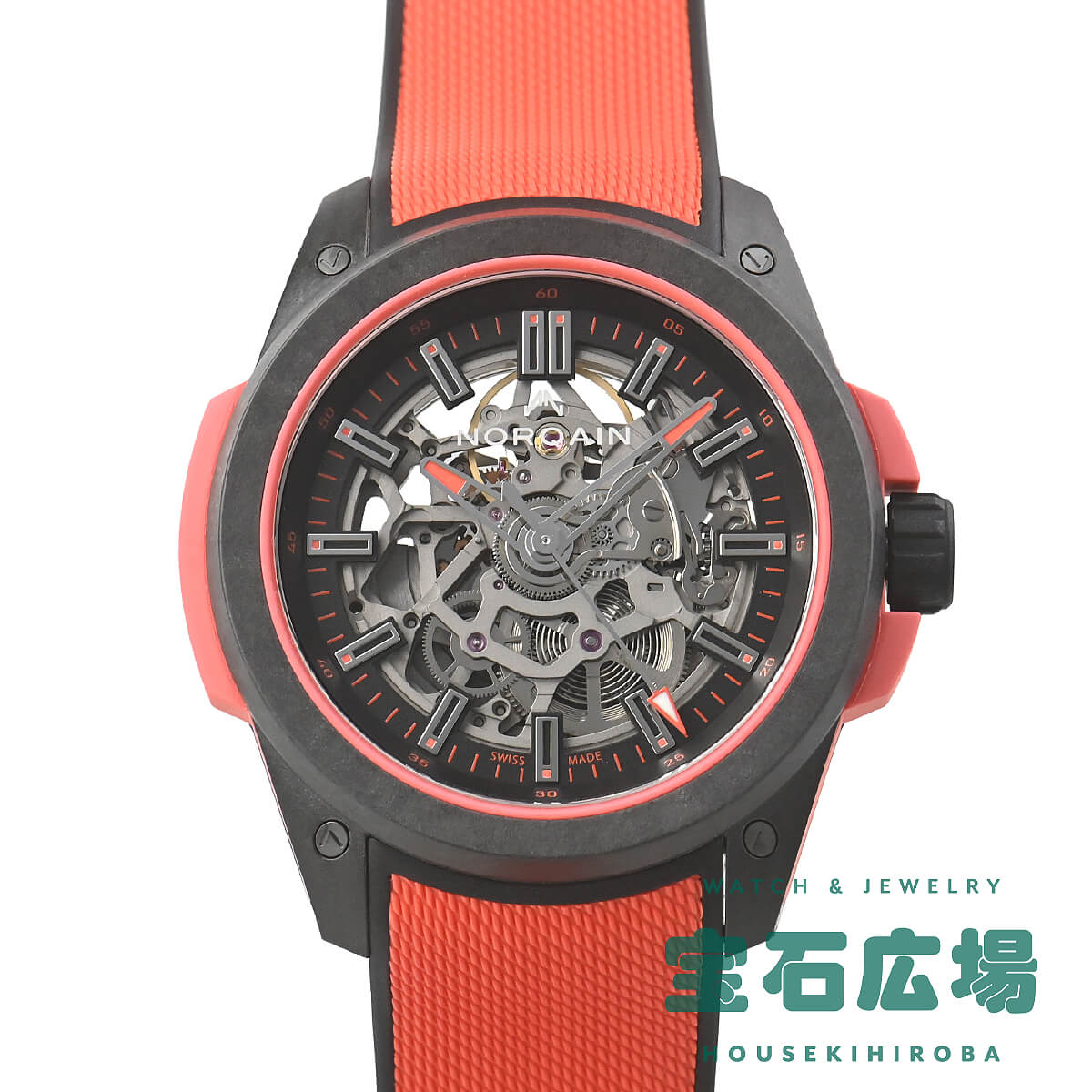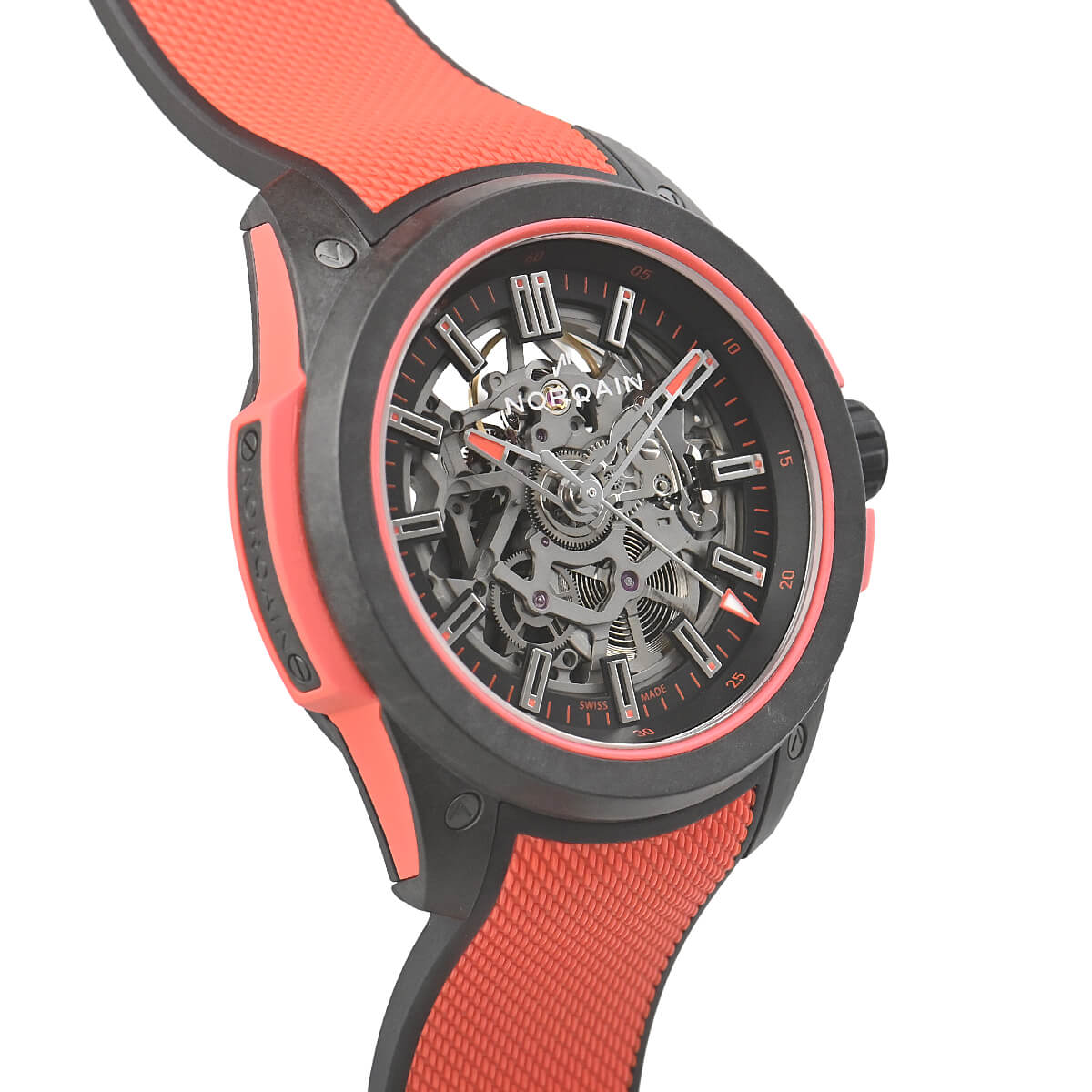 【ワイルドワン スケルトン】は、超堅牢・超軽量を誇る独自のケース素材「NORTEQ-ノルテック-」を使用しています。スケルトンムーブメントの採用により、通常のワイルドワンシリーズよりもさらに軽量化。その重量はわずか78g。これはステンレススチール製のノルケインウォッチの50%以上、通常のワイルドワンシリーズよりも6g軽くなっています。