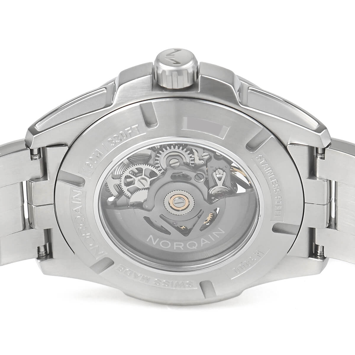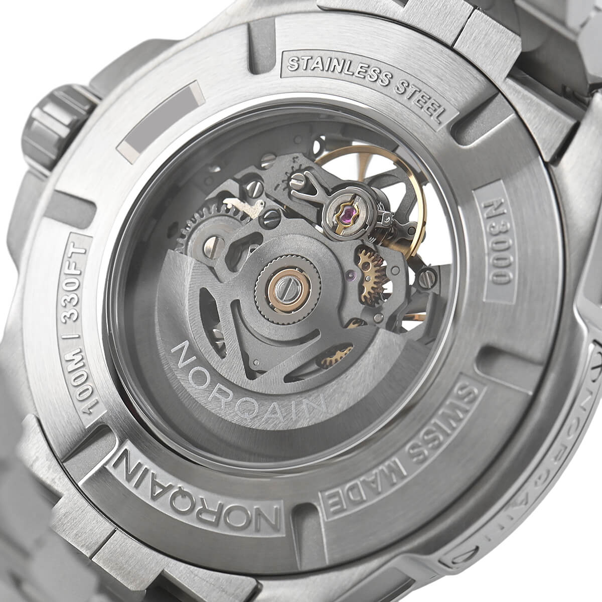 スケルトンムーブメントは、それぞれの部品を少なくとも2本のアームで支えることにより、耐衝撃性を飛躍的に向上させています。