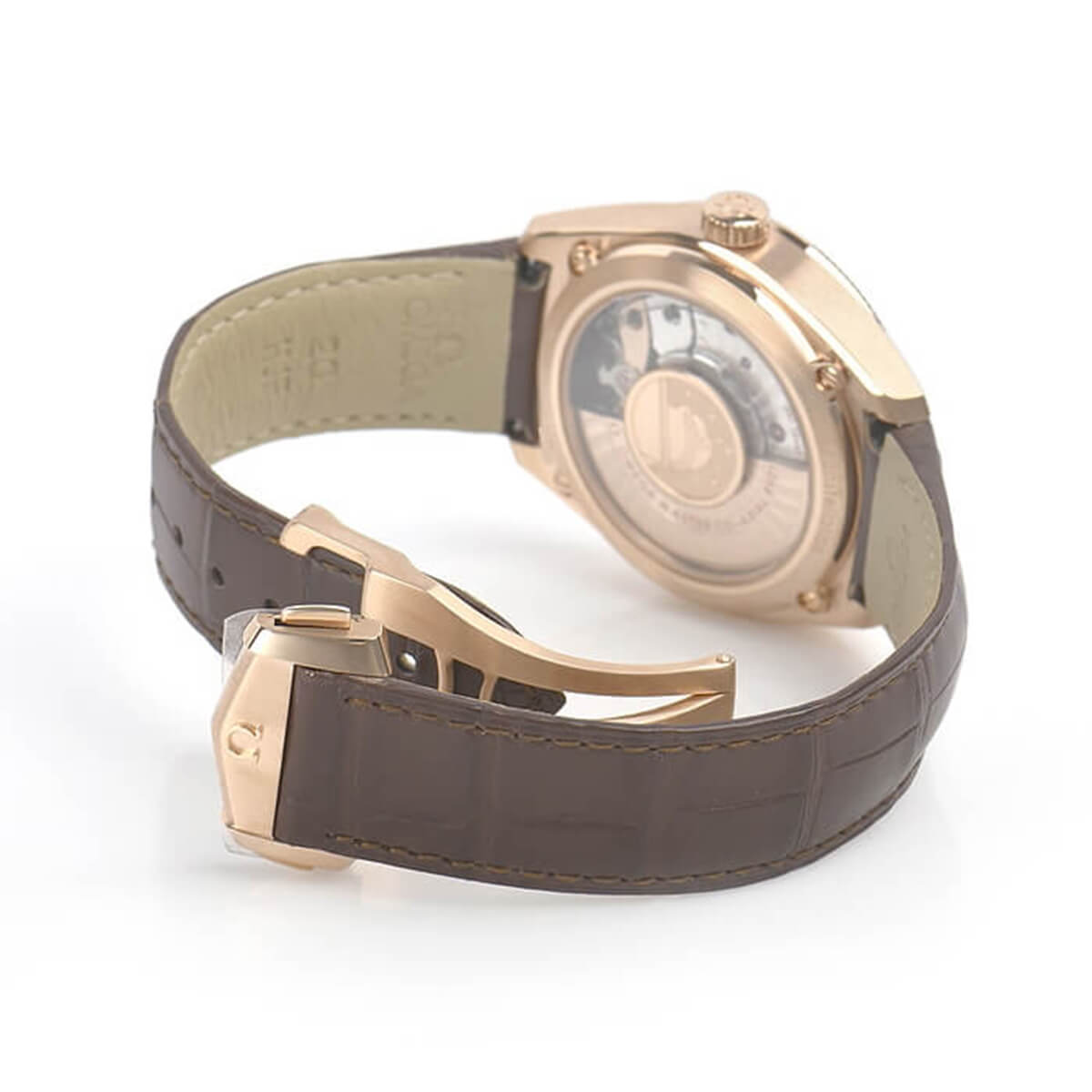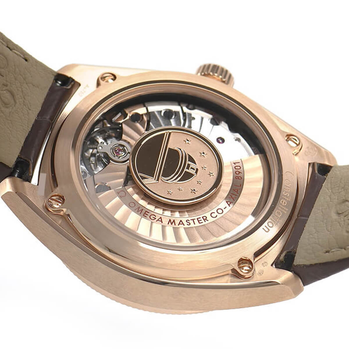 ケース素材には赤みが強く変色しづらいオメガ特許のセドナローズゴールドが使用されています。