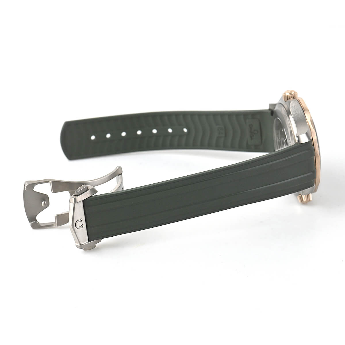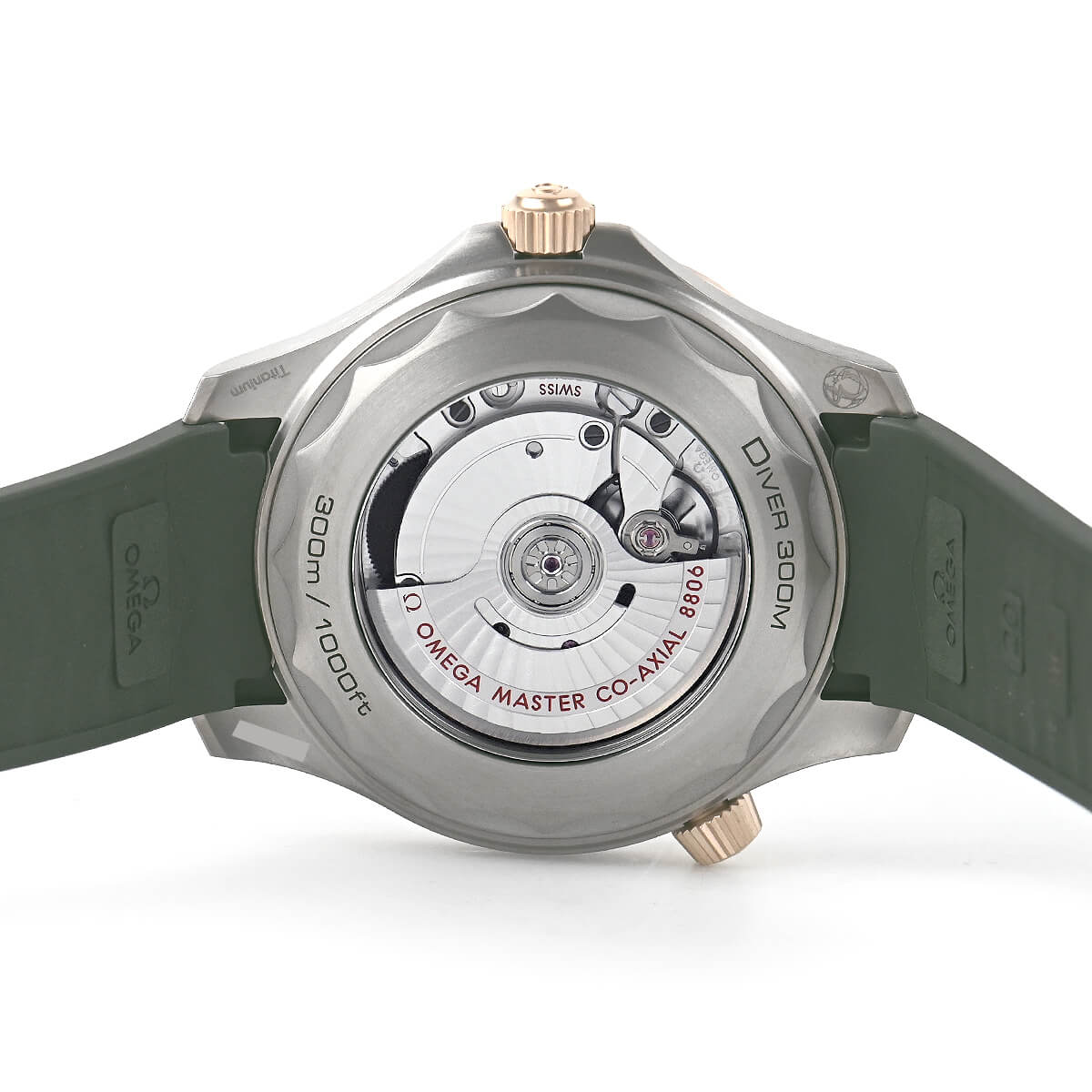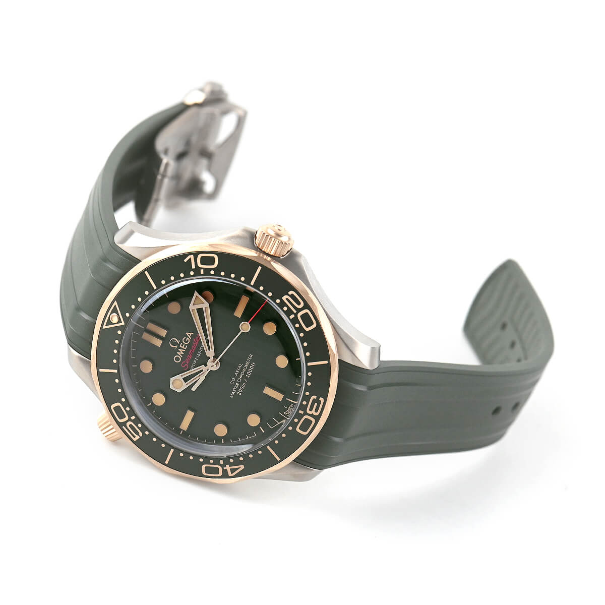 1993年に発表された【シーマスター ダイバー300M】が25周年を迎えた2018年にフルモデルチェンジを果たしました。ケース・ベゼルには、耐久性に優れたグレード2チタン&オメガ独自の9K ブロンズゴールドを採用。