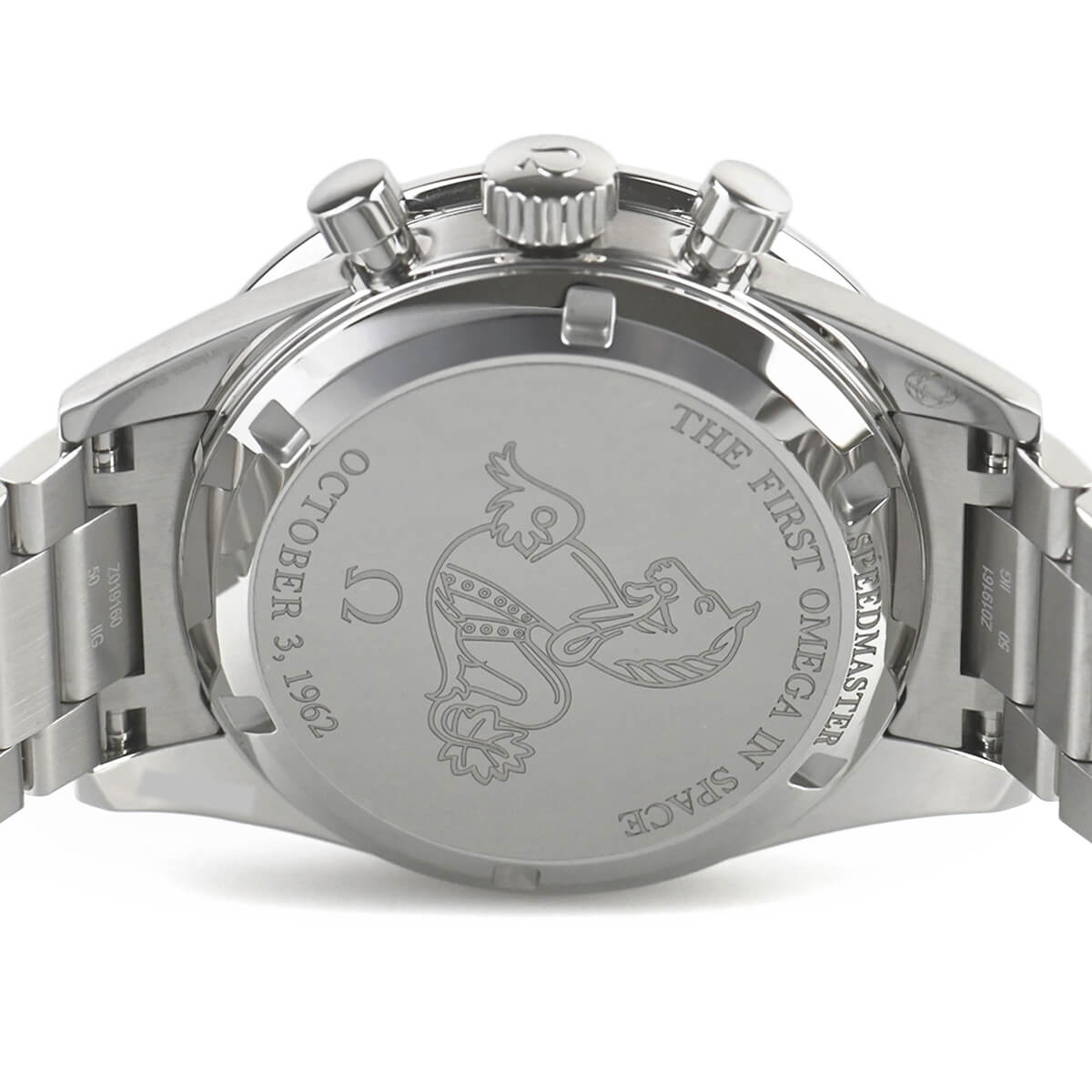 裏蓋には"THE FIRST OMEGA IN SPACE"と"OCTOBER 3,1962"という、これが最初に宇宙を旅したスピードマスターであることを証明する刻印がされています。