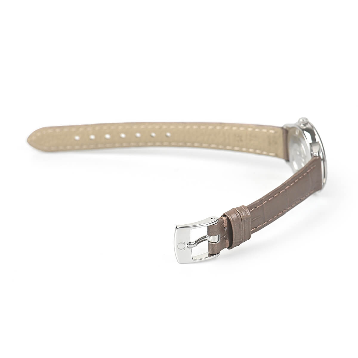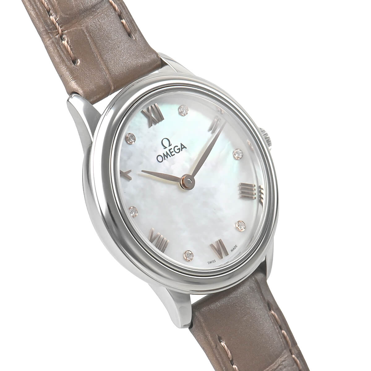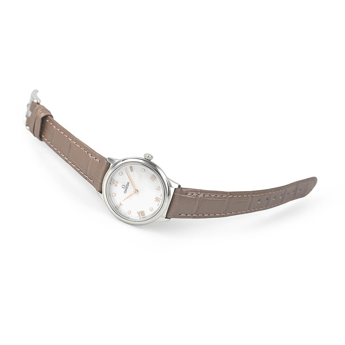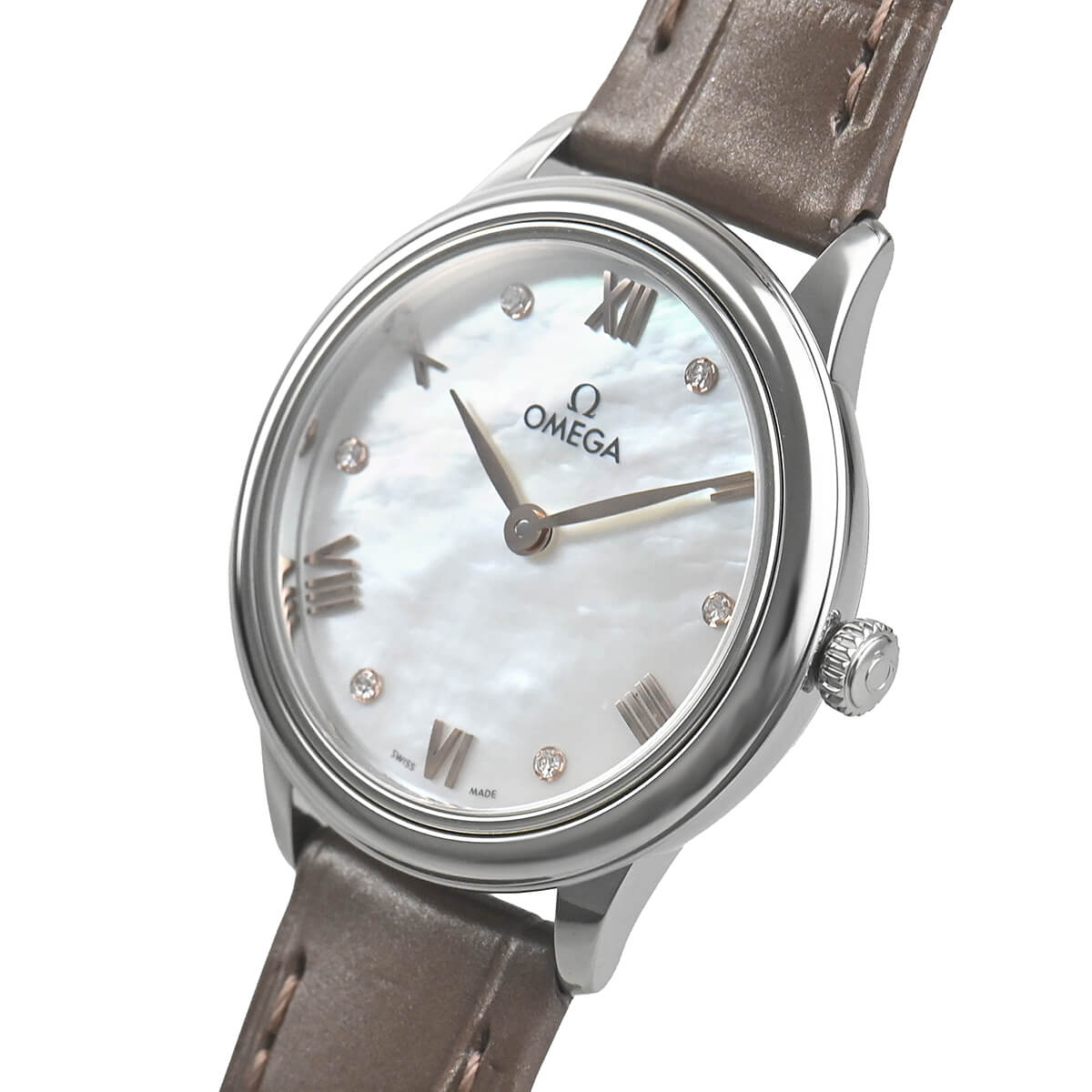 プレーンでオーソドックスなデザインの【デ・ヴィル プレステージ】。直径27.5mmのケースには、クォーツ・プレシジョンムーブメントのCal.4061を搭載しています。美しいシェル文字盤にはレディースモデルらしく6ポイントのダイヤモンドがセッティングされ、清楚でありながらも華やかな印象です。