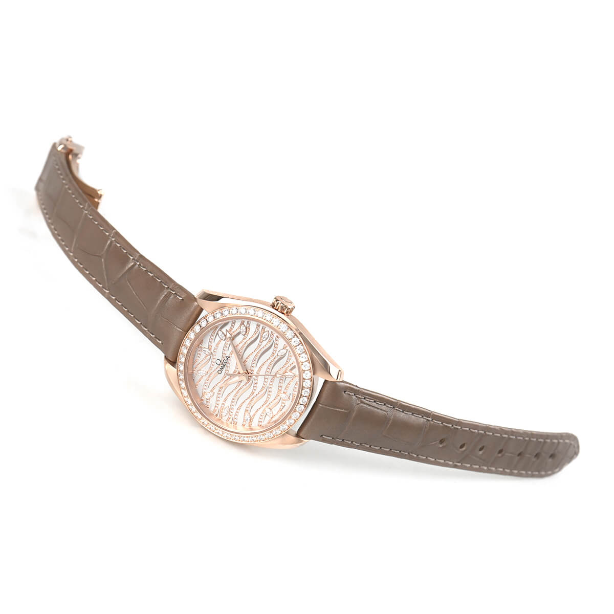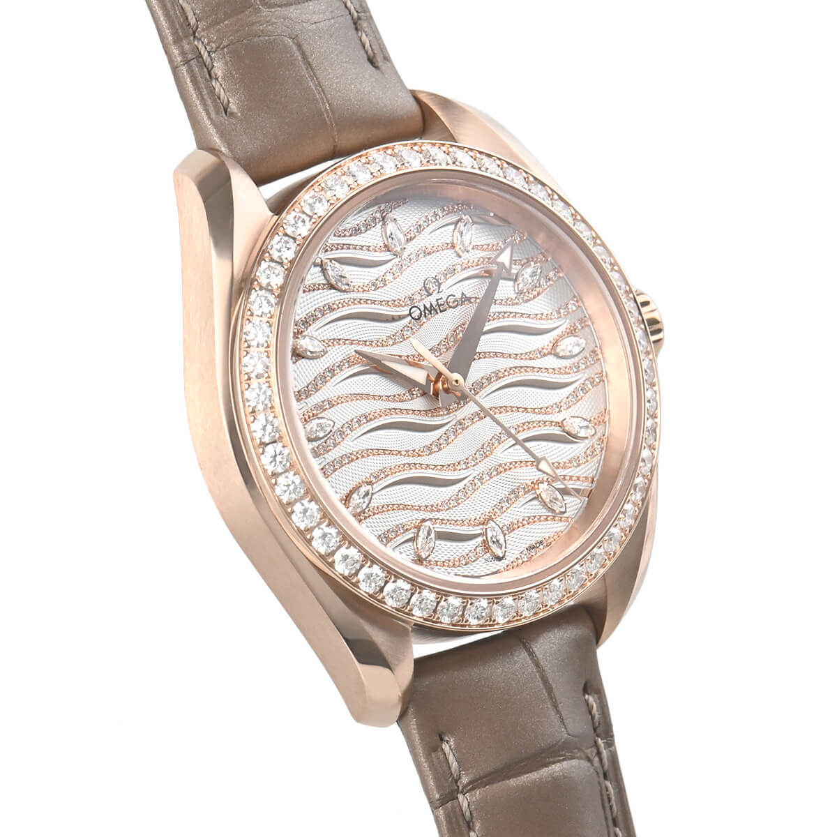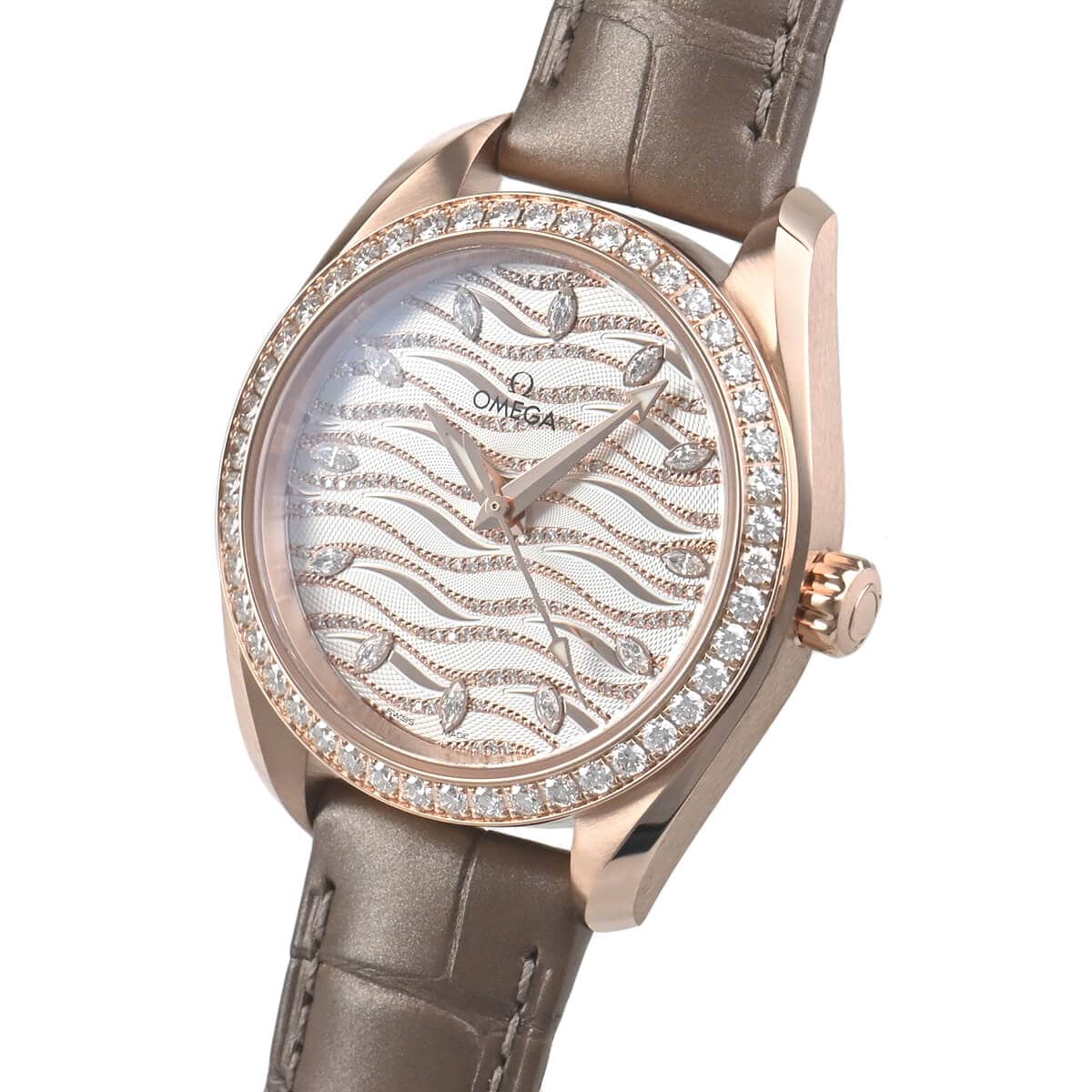 波模様の文字盤にはダイヤモンドを贅沢に施し、ベゼルダイヤが華やかさをプラス。セドナゴールドとの相性も抜群な豪華な1本です。