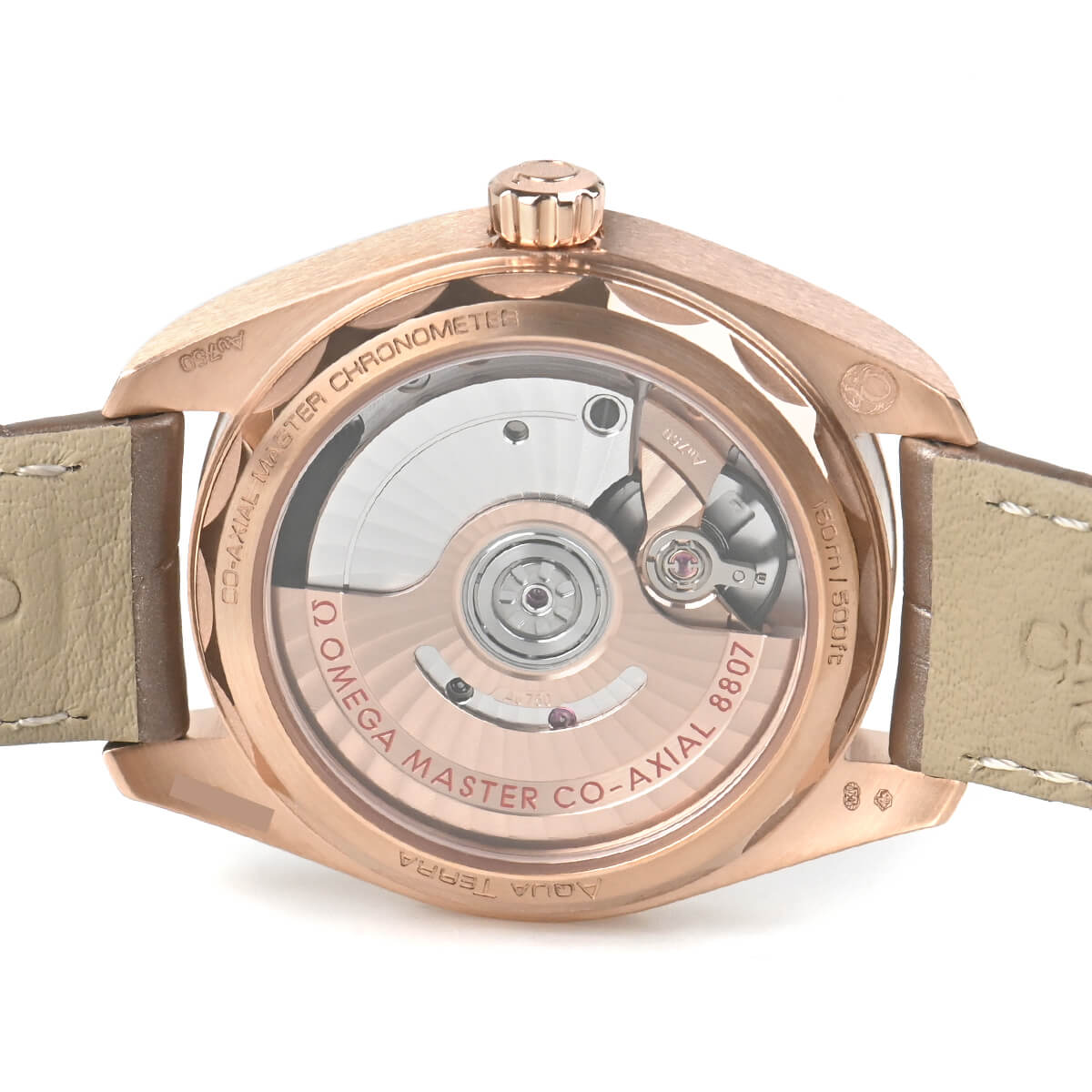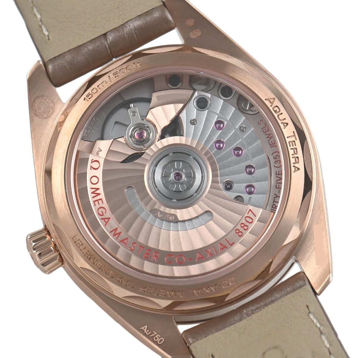 オメガの人気モデル「シーマスター アクアテラ」。こちらはオメガの誇るコーアクシャルムーブメントのCal.8807を搭載した自動巻きモデルです。