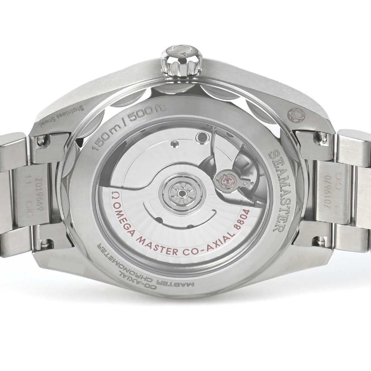 ムーブメントには15000ガウスの耐磁性能とMETAS認定のマスタークロノメーターのコーアクシャルキャリバー8804を搭載します。