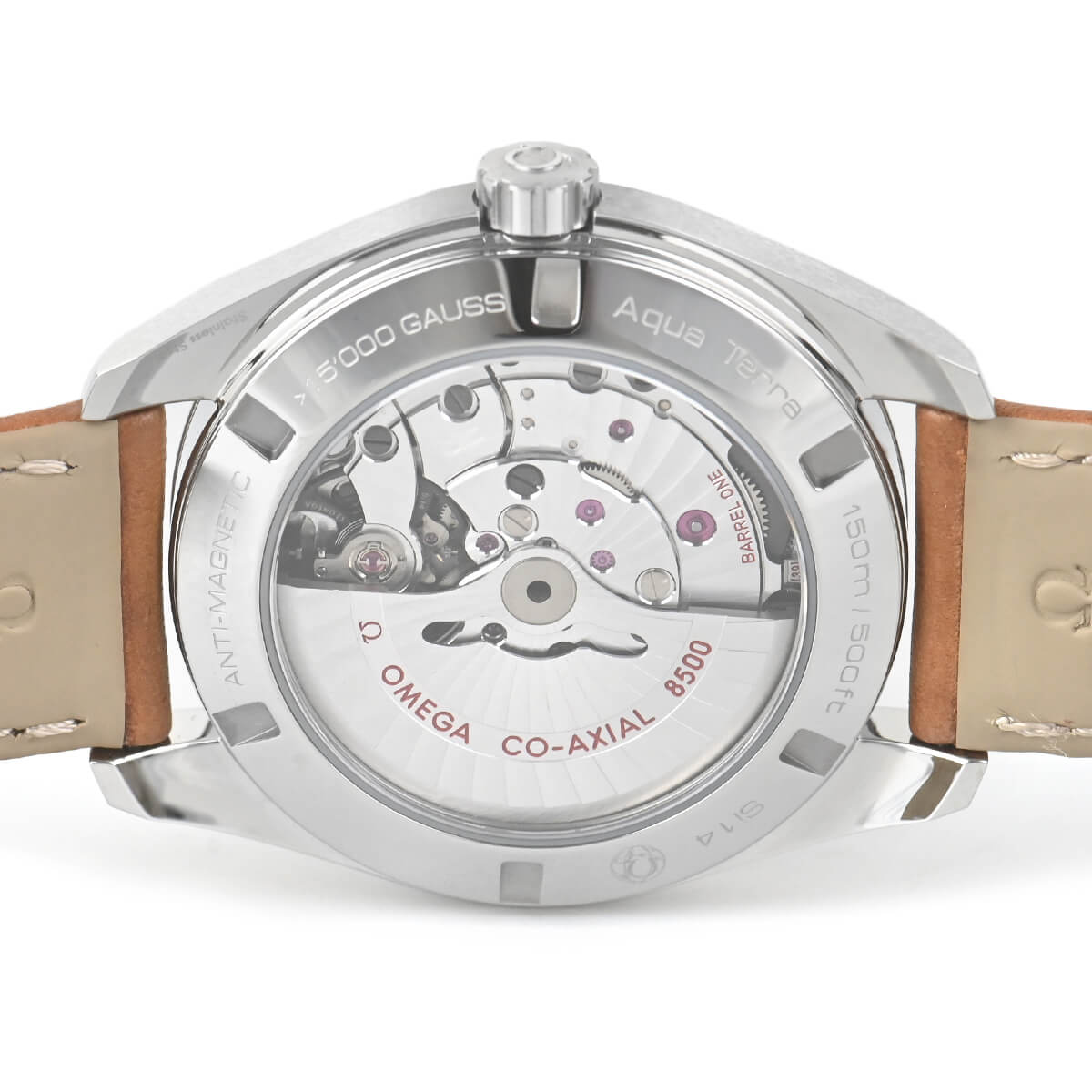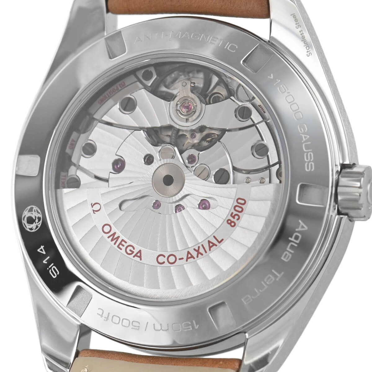 耐磁時計でありながらシースルーバックを採用した「シーマスター アクアテラ 150m」。ほとんどの耐磁時計は、ムーブメントを軟鉄製インナーケースで囲んで耐磁性を得ていますが、この時計は物理的に磁力を帯びる可能性がある鉄製のパーツを排除。